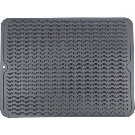 Schluss mit nassen Arbeitsplatten! Diese Silikon-Abtropfmatte ist der Held jeder Küche. Mit 48x35 cm bietet sie genug Platz für Geschirr, Töpfe und Besteck nach'm Spülen. Die cleveren Rillen sorgen für gute Belüftung - alles trocknet schneller und hygienischer. Der 1,2 cm hohe Rand hält das Wasser sicher in der Matte, nichts läuft mehr daneben. Und die Unterseite ist mit Noppen versehen, damit sie nicht verrutscht. Aus lebensmittelechtem Silikon, ohne BPA und absolut unbedenklich. Sogar hitzebeständig bis 230°C - kannst du also auch als Unterlage für heiße Töpfe nutzen. Nach Gebrauch einfach zusammenrollen oder aufhängen (dafür gibt's ein praktisches Loch). Platzsparend und super easy zu reinigen. Ob in der WG, Familienküche oder im Wohnmobil - diese Matte macht einfach alles mit. Sieht schick aus in Beige/Weiß und ist super langlebig. Endlich Ordnung und Sauberkeit auf der Arbeitsfläche!