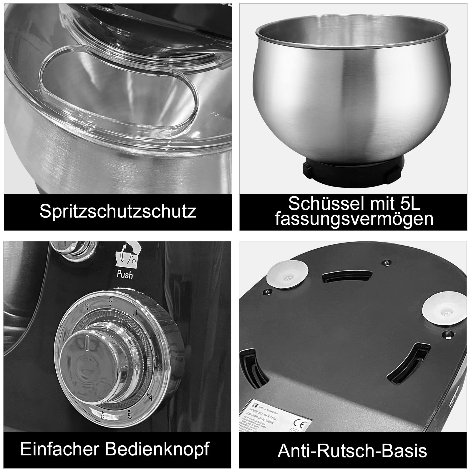 Wow, diese Küchenmaschine ist ein absoluter Kraftprotz in der Küche! Mit 1800 Watt Motorleistung knetet sie selbst den zähesten Hefeteig mühelos durch! Die große 5-Liter-Edelstahlschüssel bietet Platz für große Portionen - ideal für Familienfeiern oder Backmarathons! Mit 6 Geschwindigkeitsstufen plus Pulsfunktion hast du für jede Aufgabe die perfekte Einstellung! Im Lieferumfang sind Knethaken, Rührhaken und Schneebesen aus Aluminium-Druckguss dabei - also alles, was du zum Kneten, Rühren und Schlagen brauchst! Der Spritzschutzdeckel verhindert, dass es in der Küche aussieht wie auf einem Schlachtfeld! Die abnehmbaren Teile sind spülmaschinenfest (außer den Rührelementen) - super praktisch! Ob Brot, Kuchen, Pizza oder Cremes - diese Maschine macht alles mit! Ein echter Küchenstar für alle, die gerne backen und kochen!