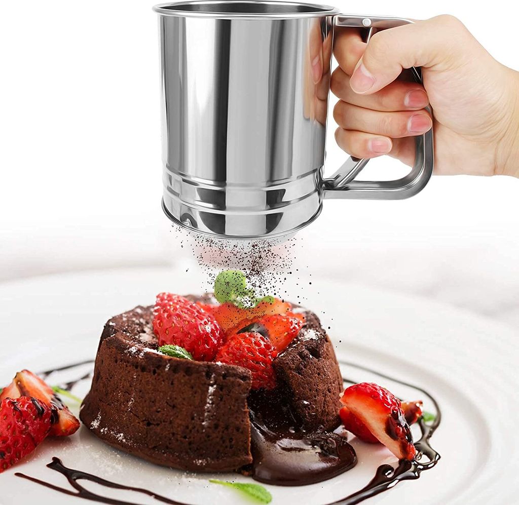 So, backbegeisterte Leute - dieses Leikance Mehlsieb ist euer neuer bester Freund in der Küche! Aus hochwertigem Edelstahl gefertigt, ist es nicht nur langlebig, sondern auch super hygienisch. Mit den Maßen 10x10x9,5cm passt es perfekt in die Hand und wiegt nur 140 Gramm. Das Einhand-Design ist genial - ob du Rechts- oder Linkshänder bist, spielt keine Rolle. Einfach das Mehl reinfüllen, leicht schütteln und schon hast du feinstes, klumpenfreies Mehl. Die Oberfläche ist glatt und verletzt deine Hände nicht. Perfekt für Kuchen, Brot oder andere Backkreationen. Nach dem Gebrauch einfach unter fließendem Wasser abspülen - praktisch! Das Sieb besteht aus 410er Edelstahl für den Becher und 201er für das Netz - also richtig gute Qualität. Wenn du gerne backst und Wert auf perfekte Ergebnisse legst, solltest du dieses Sieb unbedingt haben. Es macht das Backen so viel einfacher und professioneller. Einfach in die Hand nehmen, Mehl sieben und schon kann der Backspaß beginnen!