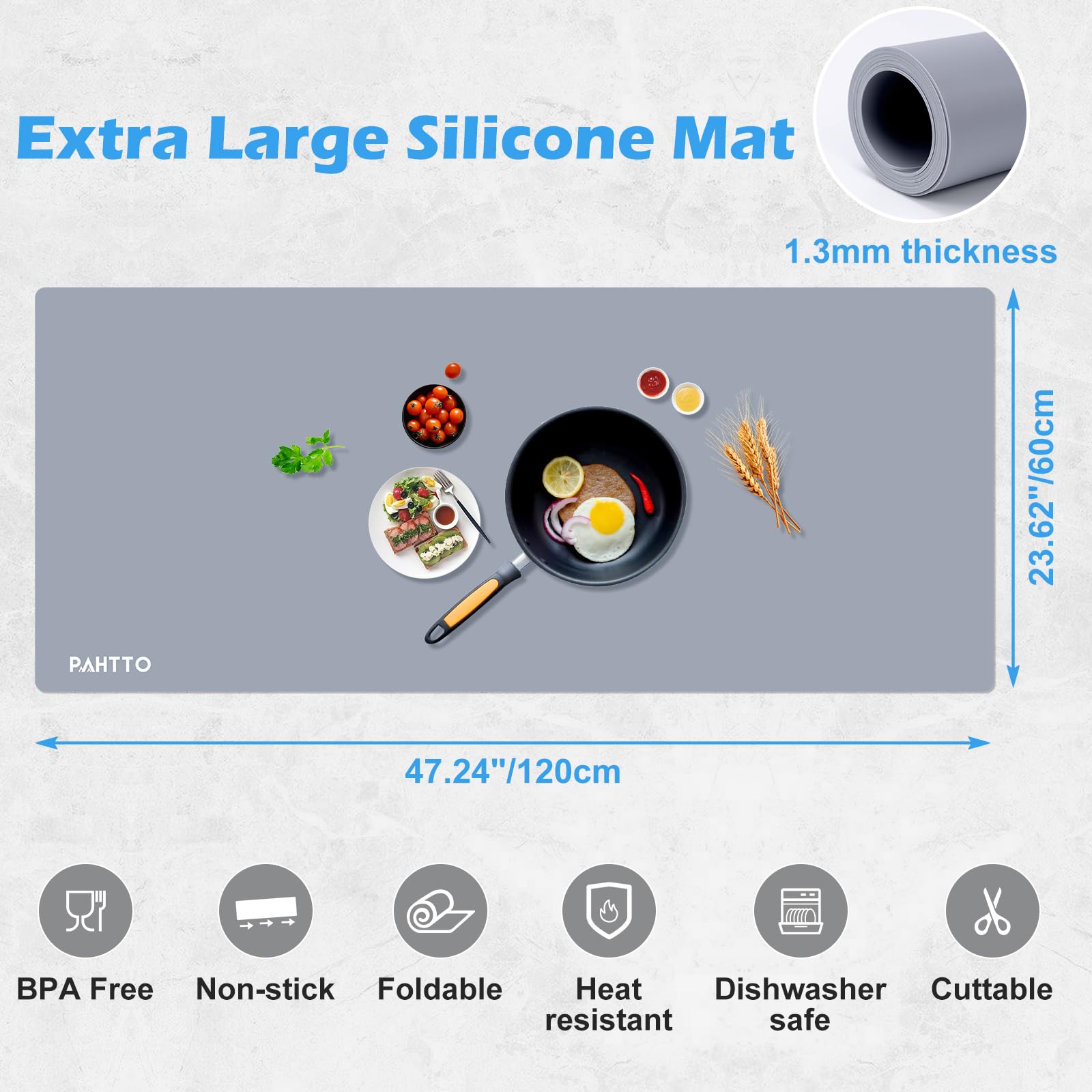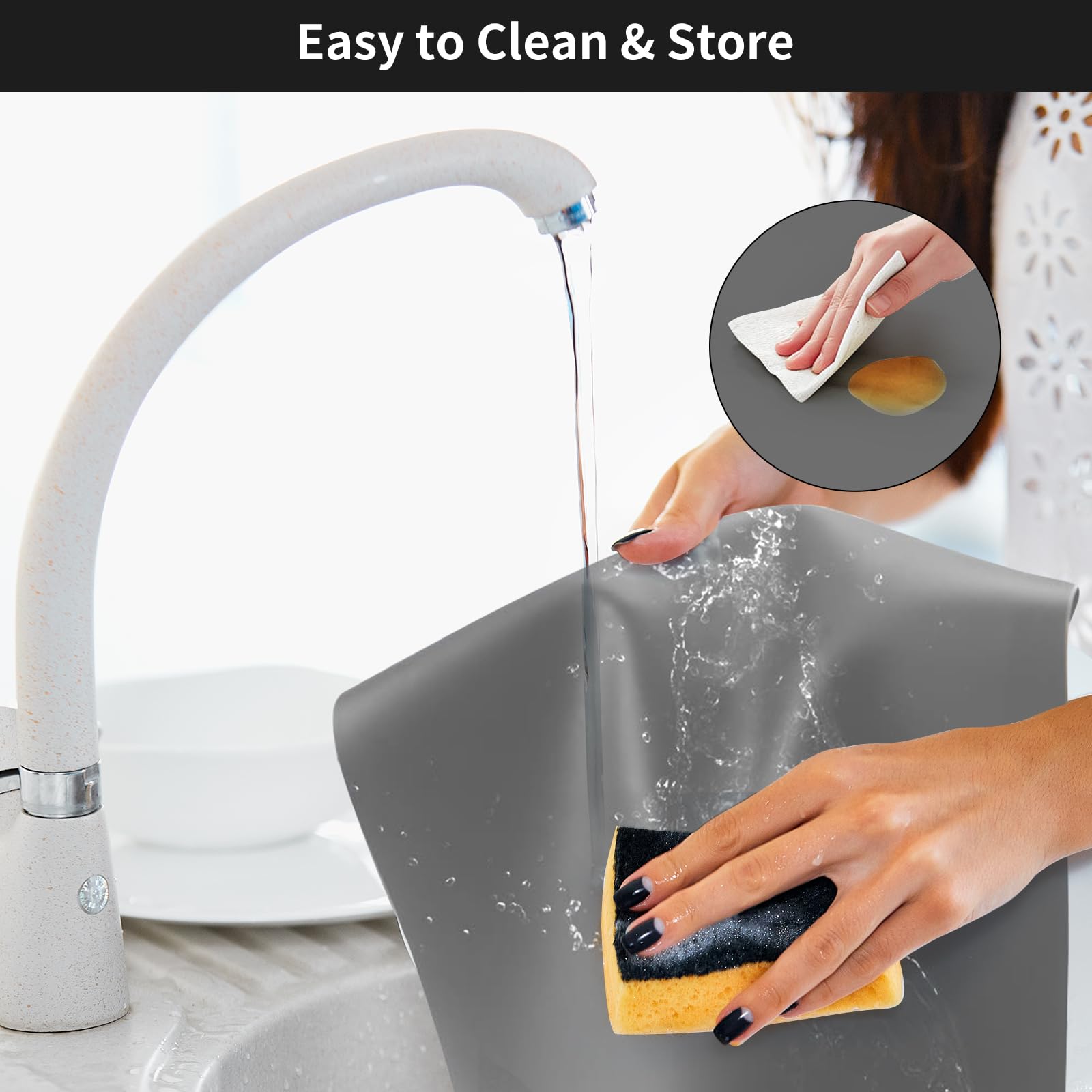 Endlich Ordnung in der Küche! Diese praktischen Silikonmatten in 90x60cm sind die perfekten Helfer für deine Arbeitsplatte. Aus hochwertigem Silikon gefertigt, sind sie hitzebeständig von -40°C bis 230°C - perfekt für unter die Luftfritteuse, Mikrowelle oder den Toaster. Die rutschfeste Oberfläche hält sicher an Ort und Stelle, während sich Verschmutzungen super einfach abwischen lassen. Einfach mit Wasser und Spültuch reinigen oder sogar in die Spülmaschine geben. Du kannst die Matten bei Bedarf auch zuschneiden, um sie an deine Arbeitsplatte anzupassen. Im 2er-Set hast du gleich Ersatz oder kannst verschiedene Bereiche abdecken. Praktisch aufgerollt geliefert, damit keine lästigen Falten entstehen. Ob als Bastelmatte, Unterlage für Töpfe oder sogar als Fütterungsplatz für Haustiere - diese vielseitigen Matten machen überall eine gute Figur!