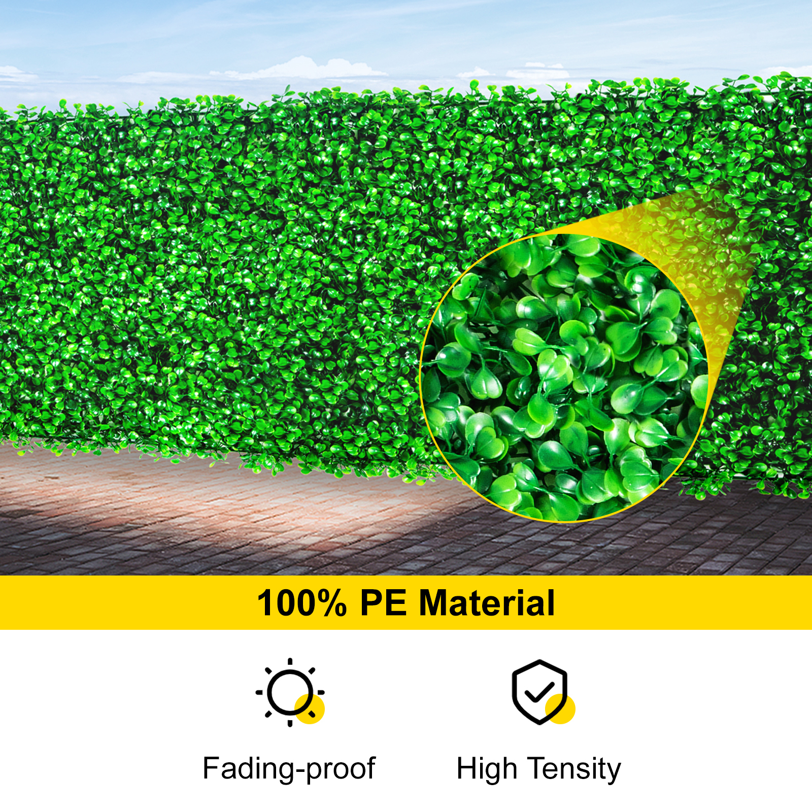 Grün das ganze Jahr - ohne Pflegeaufwand! Diese täuschend echte künstliche Hecke in 100x200 cm verwandelt deinen Balkon, Garten oder Innenraum in eine grüne Oase. Mit praktischem Spalier und dichten PE-Blättern bietet sie perfekten Sichtschutz vor neugierigen Blicken. UV-beständig, frosthart von -30°C bis +60°C und absolut pflegeleicht - einfach gelegentlich mit Wasser abspritzen. Der 3D-Effekt sorgt für natürliche Optik, die Weidenzaun-Konstruktion für Stabilität. Einfach mit Kabelbindern befestigen und schon genießt du deine Privatsphäre. Ob als Raumteiler, Zaunbegrünung oder Wanddekoration - diese Hecke macht überall eine gute Figur! Hol dir jetzt immergrüne Schönheit ohne Gießen und Schneiden!