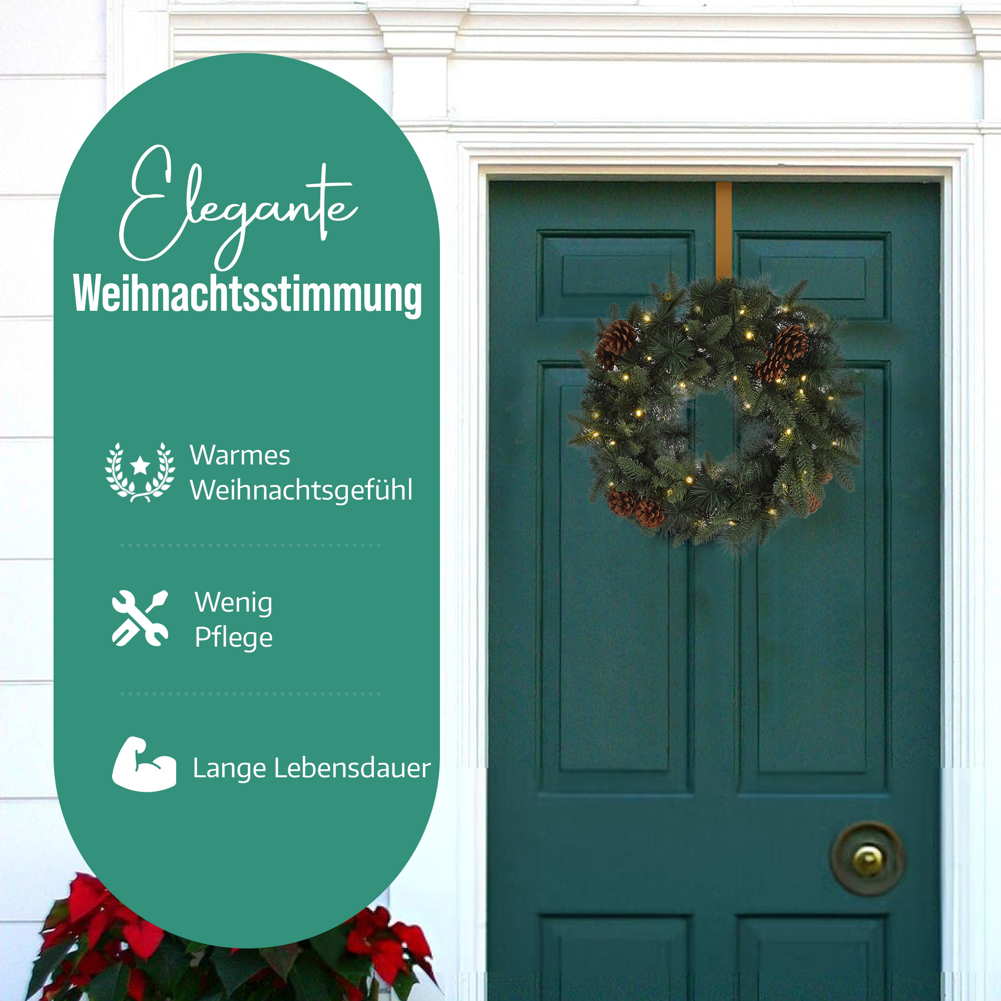 Verwandle dein Zuhause in eine weihnachtliche Winterlandschaft mit diesem täuschend echten Kiefern-Kranz! Mit 30cm Durchmesser ist er perfekt für Türen, Wände oder als Tischdekoration. Die naturgetreuen Kiefernnadeln in verschiedenen Grüntönen sehen aus wie frisch gepflückt - aber ohne lästiges Nadeln! Aus hochwertigem Kunststoff gefertigt, ist dieser Kranz jahrelang haltbar und kann immer wieder verwendet werden. Die stabile Metallbasis lässt sich wunderbar mit Schleifen, Kugeln, Zapfen oder Lichterketten individualisieren. Ob als festlicher Türkranz, elegante Wanddekoration oder basis für einen Adventskranz - die Möglichkeiten sind endlos. Perfekt für alle, die nach einer nachhaltigen und pflegeleichten Weihnachtsdekoration suchen. Einfach auspacken, aufhängen und die festliche Stimmung genießen - kein Gießen, kein Saubermachen von Nadeln! Ein zeitloses Stück, das in keinem weihnachtlich geschmückten Zuhause fehlen sollte.