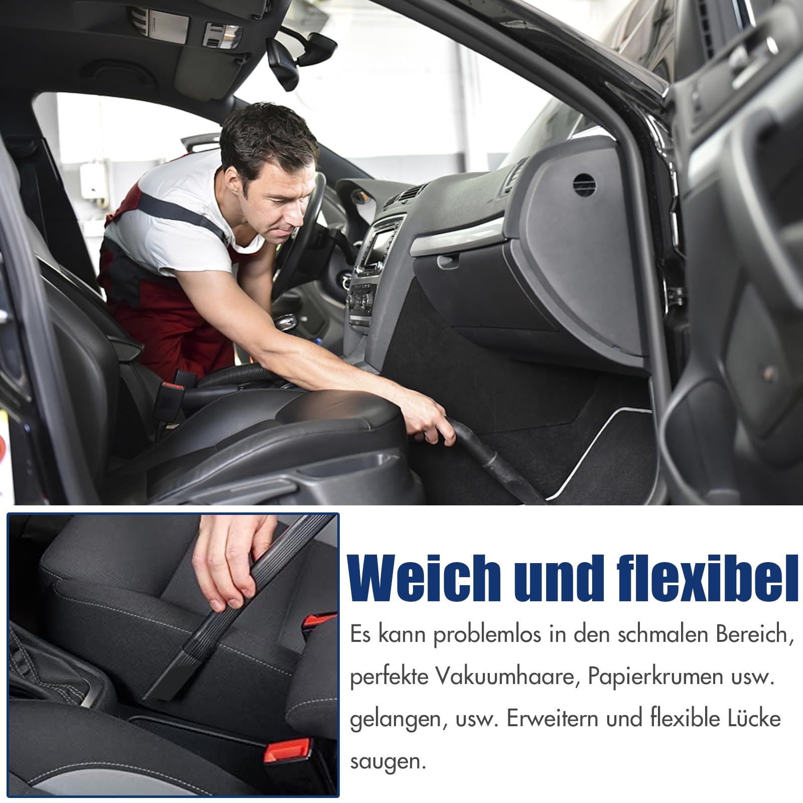 Auto-Innenräume, Sofaritzen, Treppenstufen, Ecken und überall wo normale Düsen nicht hinkommen. Endlich Schluss mit verstecktem Staub!