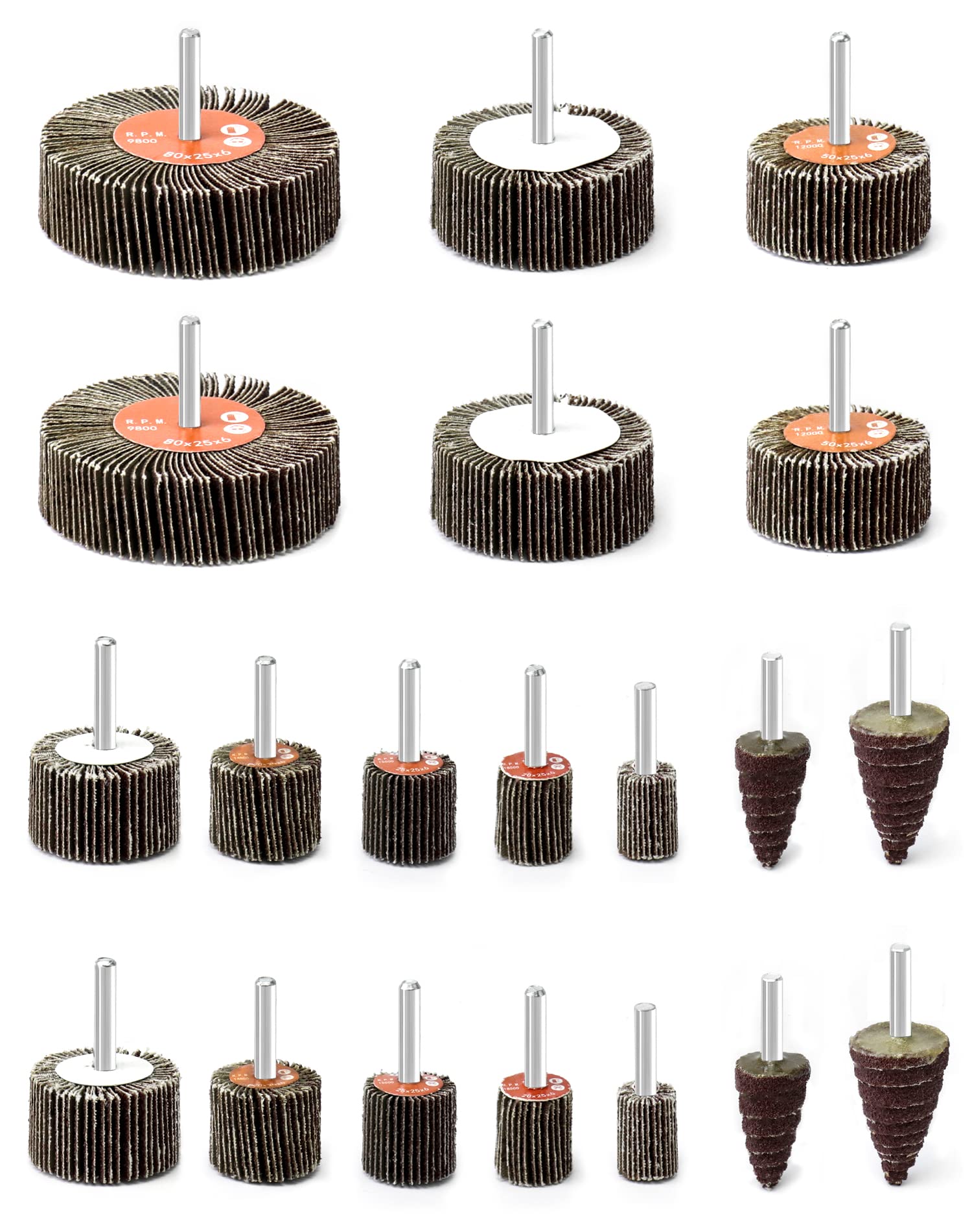 Für alle Schleif-Arbeiten die perfekte Lösung! Dieses Set mit 16 Lamellenschleifern in 50x25x6mm (2x1x1/4 Zoll) ist super vielseitig einsetzbar. Mit Körnung 80 ideal zum Entgraten, Entrosten, Schleifen und Polieren von Metall und anderen Materialien. Die Fächerscheiben aus Aluminiumoxid sind hochflexibel und passen sich auch komplexen Oberflächen perfekt an - super für konkave und konvexe Flächen! Der 1/4 Zoll Schaft passt in alle gängigen Geradschleifer, Bohrmaschinen und Tischbohrmaschinen. Maximale Drehzahl: 15.300 U/min. Ob zum Entfernen von Schweißnähten, zum Bearbeiten von Holz oder zum Entrosten - diese Schleifscheiben arbeiten schnell und effizient. Denk dran: Immer Sicherheitsausrüstung tragen beim Schleifen!
