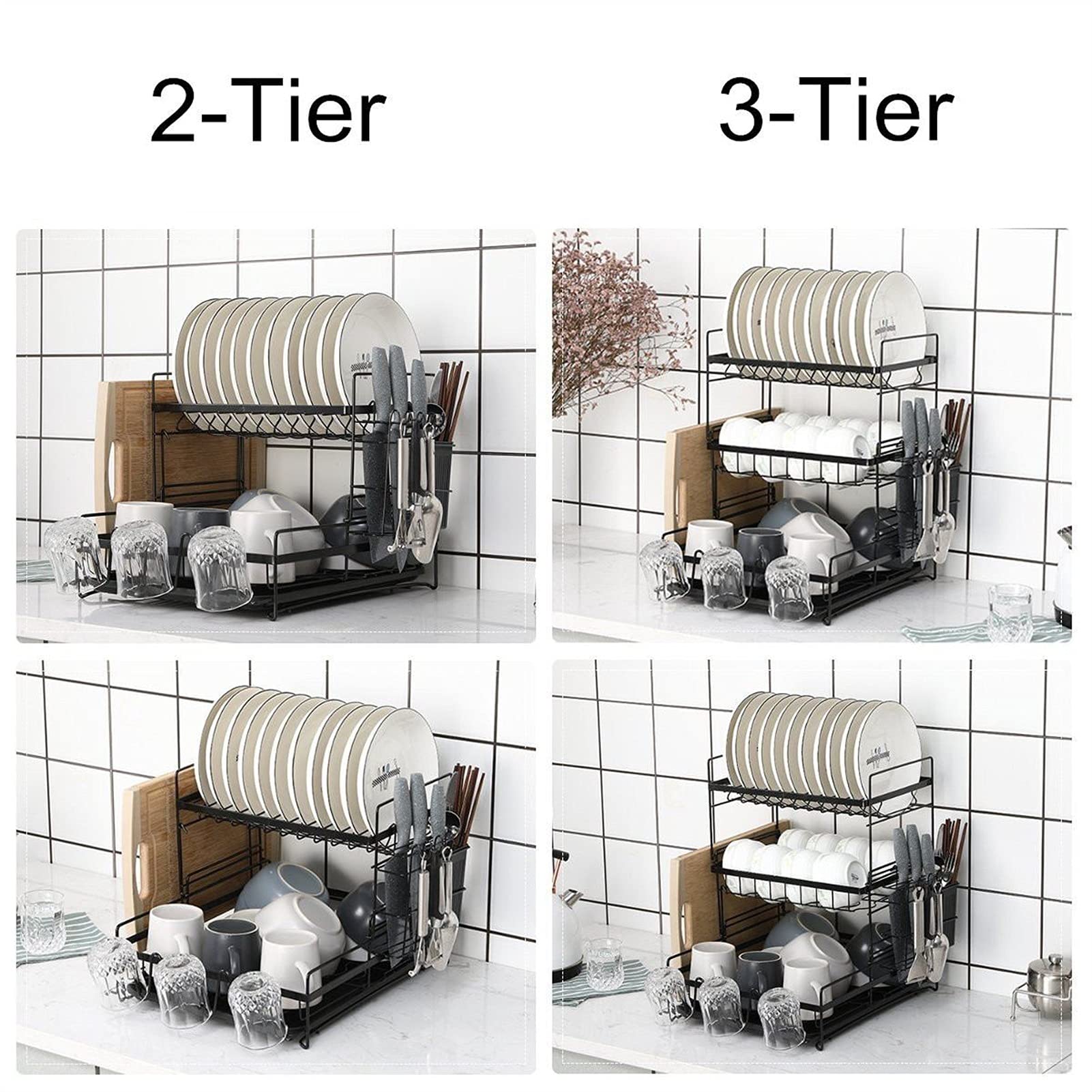 Boah, dieses Edelstahl-Abtropfregal von KICHOUSE ist ja mega praktisch für deine Küche! Mit den Maßen 39x28,8x13cm passt es super auf die Arbeitsplatte oder in den Schrank. Das coole Design mit zwei Ebenen und nem Tablett macht das Stapeln von Tellern, Schüsseln, Pfannen und Backformen zum Kinderspiel. Aus robustem Edelstahl und PP - hält ewig und ist super stabil. Endlich Ordnung in der Küche! Das Tablett fängt Tropfwasser auf und du kannst einzelne Teller rausnehmen, ohne den ganzen Stapel zu verschieben. Sieht total modern aus in Schwarz - gibt deiner Küche nen stylischen Touch. Perfekt für Privatküchen, aber auch für Restaurants geeignet. Einfach hinstellen und sofort mehr Platz und Ordnung haben. Kein Wackeln, keine Sauerei - einfach genial!