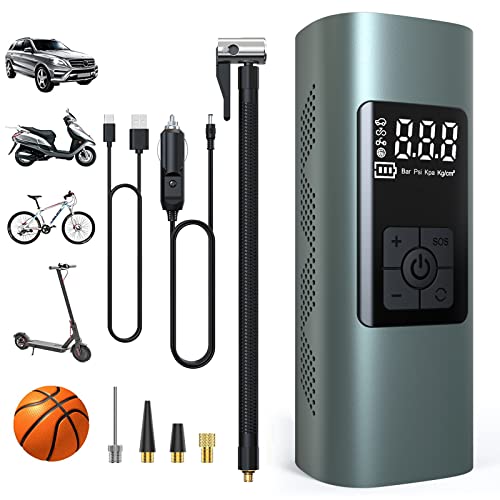 Schluss mit anstrengendem Pumpen! Die KIMIGO elektrische Luftpumpe ist dein neuer bester Freund für alle Aufpump-Aufgaben. Komplett kabellos und mit wiederaufladbarem Akku - perfekt für unterwegs! Mit 150 PSI Maximaldruck meistert sie problemlos Autoreifen, Motorräder, E-Bikes, Fahrräder und sogar Bälle. Das geniale Feature: Der Autostop! Einfach den gewünschten Druck einstellen und die Pumpe stoppt automatisch, wenn sie fertig ist. Kein Überpumpen mehr! Vier intelligente Modi (Auto, Motorrad, Fahrrad, Ball) und vier Druckeinheiten zur Auswahl. Der digitale Sensor misst mit ±1 PSI Genauigkeit - präziser geht's nicht! Das LCD-Display zeigt alle wichtigen Infos klar an. Blitzschnell aufgepumpt: Ein Auto-Reifen in nur 70 Sekunden! Mitgeliefert werden 4 verschiedene Ventiladapter für alle gängigen Ventile. Wiegt nur 490 Gramm - passt in jeden Kofferraum oder Rucksack. Eine Ladung reicht für bis zu 10 Reifen! Aber das ist noch nicht alles: Die Pumpe hat auch eine Taschenlampe mit 3 Modi (Dauerlicht, SOS, Stroboskop) und kann als Powerbank deine Geräte aufladen! Ob beim Camping, auf Reisen oder daheim - diese All-in-One-Lösung ist unschlagbar. Mach dir das Leben leichter mit dieser cleveren Luftpumpe!