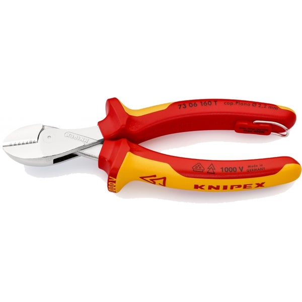 Alter, das ist ja mal eine richtig gute Zange! Der KNIPEX X-Cut Seitenschneider mit 160 mm Länge ist einfach klasse verarbeitet - Made in Germany, versteht sich! Das besondere: Die X-Cut Schneidtechnologie schneidet selbst feinste Drähte und harten Pianodraht wie Butter. Mit der integrierten Befestigungsöse kannst du eine Absturzsicherung anbringen - super sicher bei Arbeiten in der Höhe! Das durchgesteckte Gelenk gibt maximale Stabilität bei minimalem Gewicht. Die mehrkomponentigen Griffhüllen liegen perfekt in der Hand und die doppelt gelagerte Gelenkachse hält auch bei harter Beanspruchung ewig. Ob Elektroarbeiten, Modellbau oder Heimwerker-Projekte - dieser Seitenschneider macht einfach Spaß! KNIPEX Qualität merkst du sofort: Präzise Schneidleistung mit minimalem Kraftaufwand. Einfach ein Werkzeug, auf das du dich verlassen kannst - für Profis und ambitionierte Heimwerker gleichermaßen!