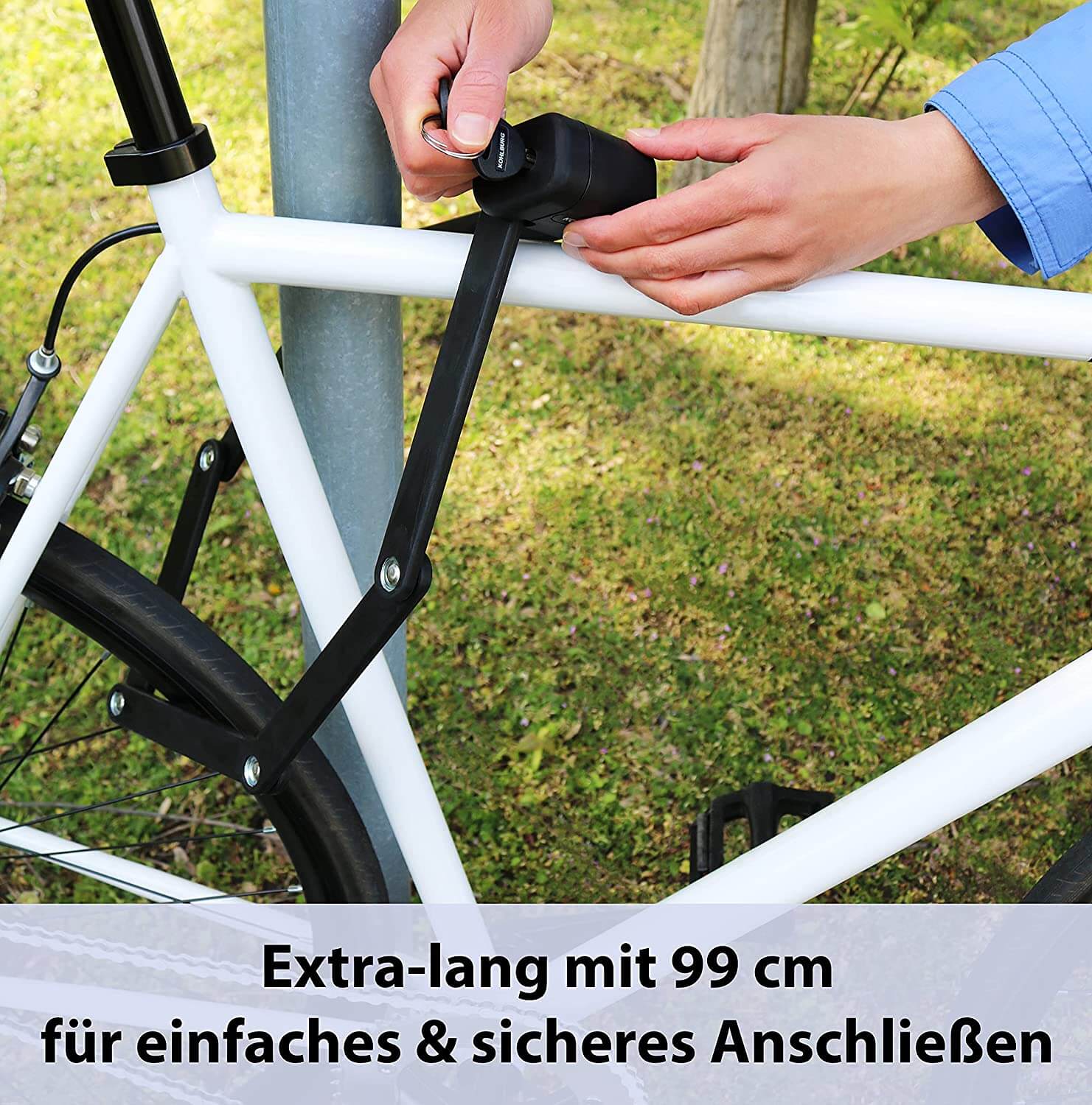 Schluss mit Diebstahlangst! Dieses KOHLBURG Faltschloss bietet dir maximale Sicherheit für dein wertvolles Rad, E-Bike oder E-Scooter. Mit extra-dicken 9 mm Faltgliedern (mit 6 mm Stahlkern!), Bohrschutz und robuster Verarbeitung - Sicherheitsstufe 15. Die 100 cm Länge sind perfekt zum Anschließen an Laternen, Zäune oder um sogar zwei Räder zu sichern. Inklusive klapperfreier Halterung für den Rahmen (bis 6,4 cm Durchmesser) und 4 Schlüssel - ideal für Familie oder als Ersatz. Deutscher Kundenservice aus Tübingen gibt dir ein sicheres Gefühl. Einfach montieren und dein Bike ist bestens geschützt, ob in der Stadt oder auf Tour. Endlich ein Schloss, das wirklich hält, was es verspricht!
