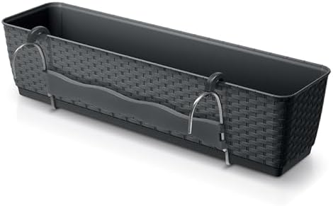 Dieser KOTARBAU Blumenkasten sieht aus wie aus Holz, ist aber aus robustem Kunststoff - beste Qualität! Mit 58x18x16 cm Größe und brauner Lattenoptik passt er super an jedes Balkongeländer. Das besondere: Selbstbewässerungssystem - deine Pflanzen kriegen immer genug Wasser, auch wenn du mal nicht da bist. UV-beständig und wetterfest, hält auch bei Sonne und Regen. Nur 1,1 kg leicht, aber trotzdem stabil. Innenmaße 53,5x13,5 cm - Platz für schöne Blumen oder Kräuter. Einfach zu reinigen und kratzfest. Macht deinen Balkon oder Terrasse sofort gemütlicher!