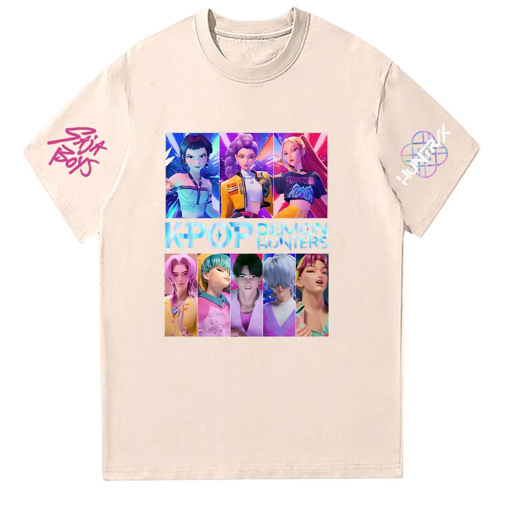 Zeig deine Liebe zu KPop! Dieses coole De-mon H-Hunters T-Shirt aus weicher Baumwolle ist perfekt für Fans. Als Unisex-Shirt passt es Herren, Damen und Kindern gleichermaßen. \\n\\nDie Verarbeitung ist top: Doppelte Nähte an Kragen und Saum, atmungsaktives Material und ein lässiger Schnitt. Kombinierbar mit Jeans, Shorts oder Rock - immer stylisch! \\n\\nSuper für Konzerte, Alltag oder als Geschenk für andere Fans. Wichtig: Wegen der manuellen Messung lieber eine Größe größer bestellen! So sitzt es garantiert perfekt und du zeigst deinen Music-Style.