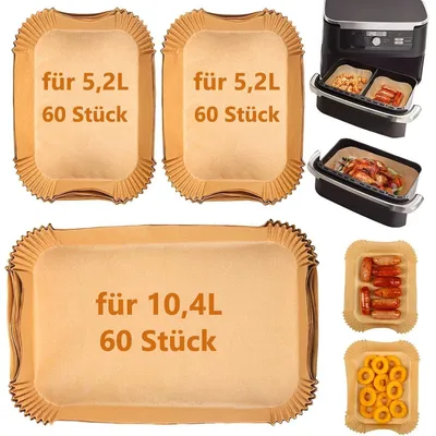 Macht das Kochen mit der Heißluftfritteuse noch einfacher! Diese 120 Backpapier-Stücke von KRUSTENWERK sind perfekt zugeschnitten für Ninja Doppelkammer-Modelle (AF300EU, AF400EU, AF500EU). Mit den Maßen 20,5x14cm und erhöhtem Rand passen sie genau in die Fritteuse. Aus lebensmittelechtem, antihaftbeschichtetem Material - absolut sicher für deine Gesundheit. Kein lästiges Reinigen der Fritteuse mehr - einfach das Backpapier entsorgen und fertig! Schützt die Fritteuse vor Verschmutzungen und macht das Garen sauberer. Perfekt für Pommes, Gemüse, Fleisch und vieles mehr. Die große Packung mit 120 Stücken reicht für viele leckere Mahlzeiten. Einfach ins Gerät legen, Essen darauf - und schon kann's losgehen! So macht Kochen mit der Heißluftfritteuse noch mehr Spaß!