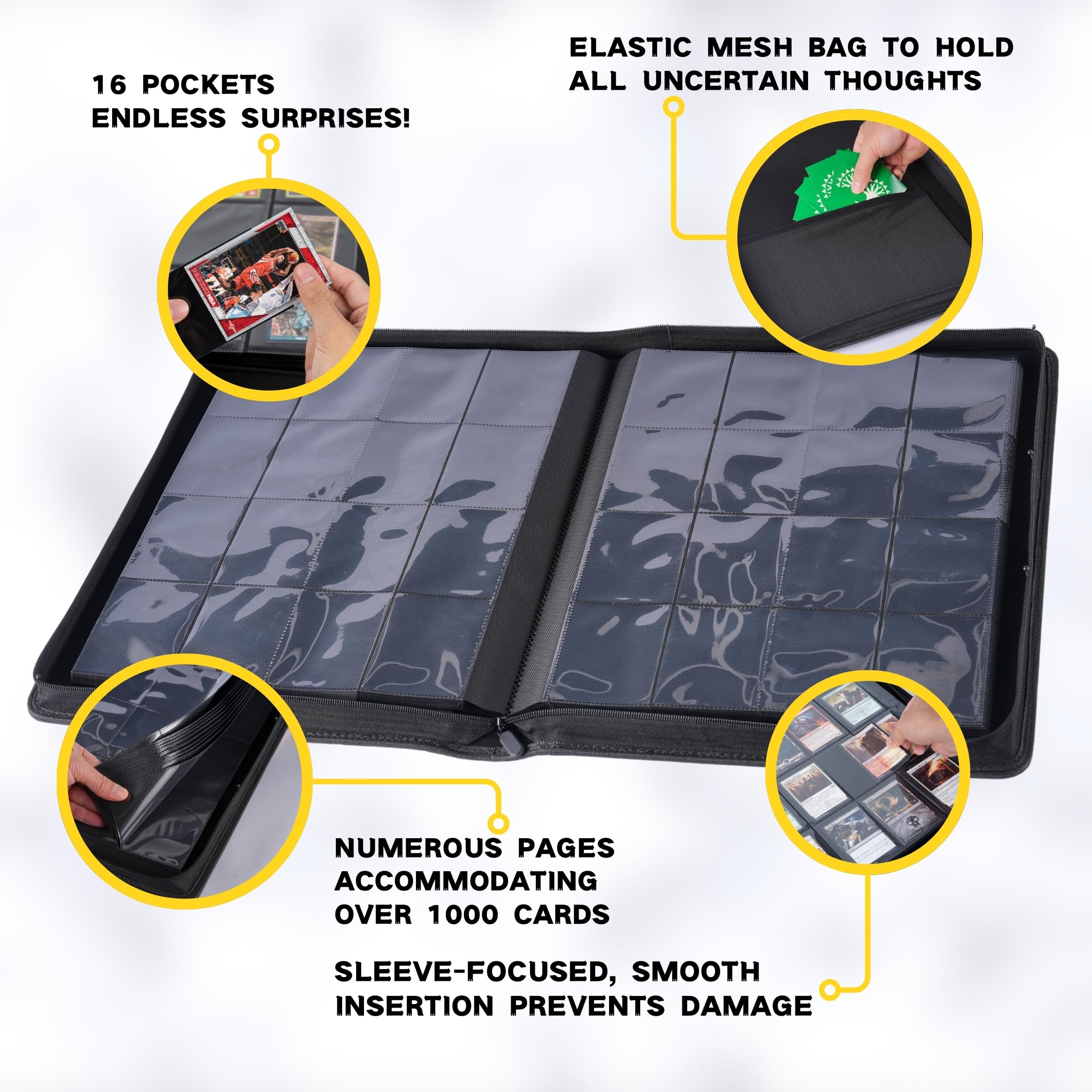 Wow, dieser KUOOKING Binder ist ein echter Traum für jeden Sammler! Mit satten 2000 Taschen hast du Platz für deine komplette Sammlung - ob MTG, Pokémon oder Sportkarten. Die seitlich ladenden Hüllen schützen deine wertvollen Karten vor Staub und Beschädigung. Mit Reißverschluss bleibt alles sicher verschlossen und du kannst den Ordner überall mitnehmen. Aus hochwertigem, wasserdichtem PU-Leder und mit archivsicheren, säurefreien Seiten. Das schwarze Design sieht einfach klasse aus und passt zu jeder Sammlung. Perfekt für Einsteiger und Profis - deine Karten sind hier bestens aufgehoben!