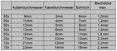 Ordnung und Sicherheit für deine Kabel! Dieses umfangreiche 295-teilige Set mit Kabeldurchführungen in verschiedenen Größen von 6-18mm schützt deine Kabel zuverlässig vor scharfen Kanten in Bohrungen. Perfekt für Schaltkästen, Verteilerkästen, Unterverteilungen, Büros, Werkstätten und Rechenzentren. Die strapazierfähigen Gummitüllen werden einfach über das Bohrloch gestülpt und schützen so Kabel aller Größen vor Beschädigungen. RoHS-konform und aus 100% Gummi gefertigt für lange Haltbarkeit. Nachdem alle Tüllen verbraucht sind, kannst du die stabile Sortimentsbox weiter für andere Kleinteile verwenden. Ein unverzichtbares Set für jeden Elektriker, Heimwerker oder Techniker, der Wert auf saubere und sichere Installationen legt. Immer die passende Größe zur Hand - nie wieder suchen! Einfache Handhabung, professionelles Ergebnis. Deine Kabel werden es dir danken!