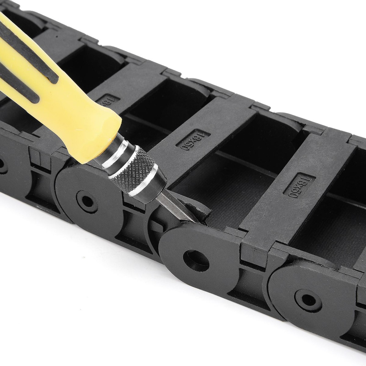Schluss mit Kabelsalat! Diese coole Kabelkette von HYWHUYANG hält deine Kabel und Schläuche perfekt organisiert. Mit 1 Meter Länge und ner Innenlochgröße von 15x30mm ist die Kette ideal für elektrische Maschinen. Das verstärkte Nylon ist echt robust - hält hohen Druck und Zugbelastungen stand, ist abriebfest und bleibt auch bei höheren Temperaturen stabil. Die Glieder rotieren super leicht, sodass sich die Kette super flexibel bewegen lässt. Perfekt um Kabel vor Verschleiß zu schützen und die Sicherheit an deinen Maschinen zu erhöhen. Einfach die Kabel reinlegen, zuklappen und schon bleibt alles an seinem Platz. Kein Verheddern mehr, keine kaputten Kabel - einfach praktisch!