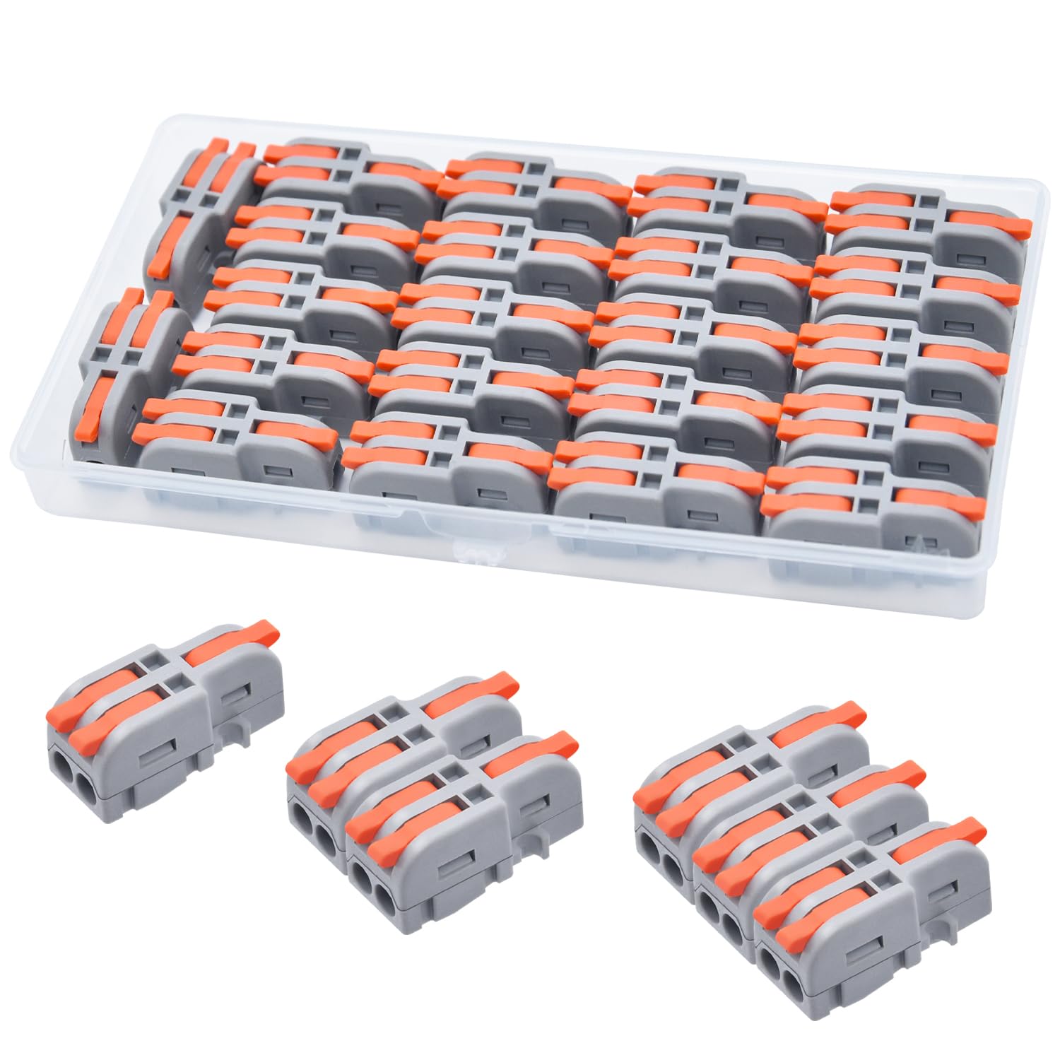 Verdrahtung war noch nie so einfach! Mit diesen 50 praktischen Schnellanschlussklemmen sparst du dir lästiges Schrauben. Einfach den Hebel öffnen, Kabel einlegen, Hebel schließen - fertig! Jede Klemme hält bis zu 250V und 32A aus und ist für Kabeldurchmesser von 0,14-4mm² geeignet. Perfekt für Hausinstallationen, Beleuchtung, Steckdosen oder industrielle Anwendungen. Das transparente Gehäuse aus flammhemmendem PA66-Nylon ermöglicht schnelle Sichtkontrolle, während die orangenen Hebel für gute Sichtbarkeit sorgen. Die innenliegenden Kupferteile garantieren sicheren Stromfluss ohne Wackelkontakte. Ob du Profi-Elektriker oder Heimwerker bist - mit diesen Klemmen wird jede Verdrahtungsarbeit zum Kinderspiel. Spart Zeit und Nerven bei gleichbleibender Sicherheit!