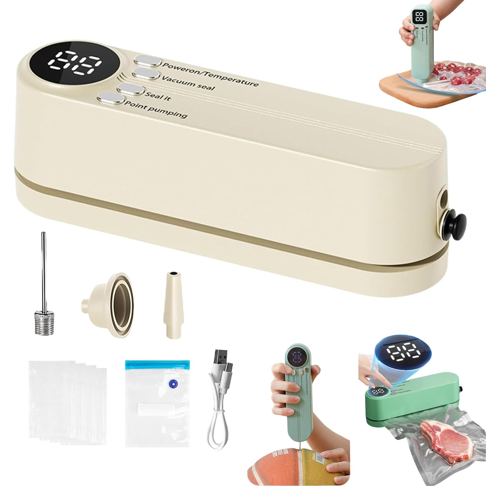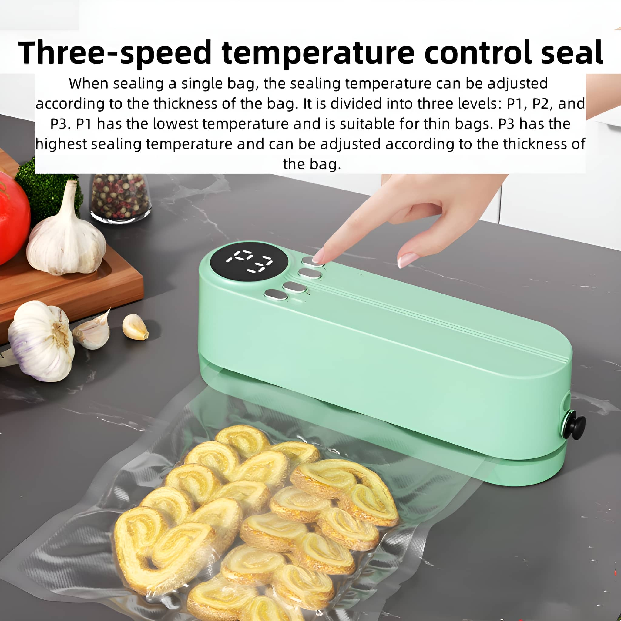 Dieser Mini Vakuumierer ist ja mal ein echtes Multitalent! Kabellos mit 1200mAh Akku - damit schaffst du 40-60 Vorgänge pro Ladung. Super praktisch für unterwegs! Mit starker 60Kpa Saugkraft und schnellen 10-20 Sekunden Vakuumierzeit. Die 3 Temperaturstufen (P1-P3) passen sich perfekt an deine Beutelstärke an. Und es gibt 3 Modi: Vakuumieren, Hochdruck für trockene Sachen, Niederdruck für nasse Lebensmittel. Aber das ist noch nicht alles - er kann auch aufblasen! Perfekt für Bälle, Schwimmringe oder Luftmatratzen. Aus ABS-Material, also robust und langlebig. Ob für Camping, Reisen oder einfach zu Hause - dieses kleine Gerät macht Lebensmittel länger frisch und spart Platz. Einfach, effektiv und mega praktisch!