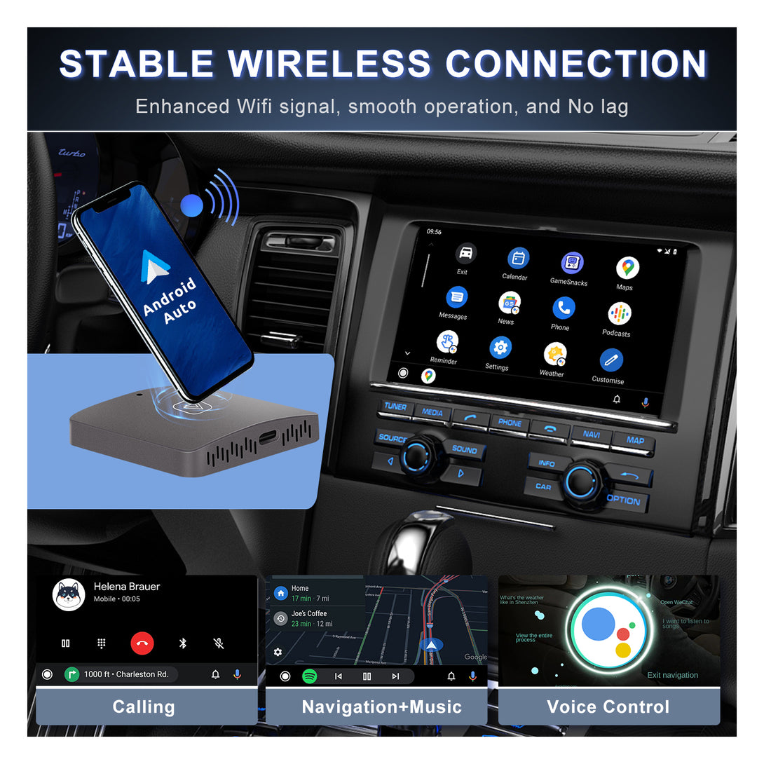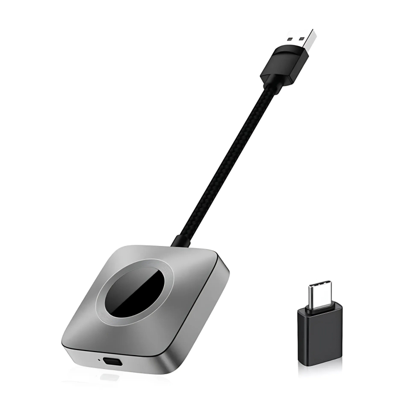 Endlich kabellos fahren! Dieser Adapter macht dein CarPlay/Android Auto in Sekunden wireless. Einfach einstecken - in 5 Sekunden verbunden, selbst wenn das Phone in der Tasche bleibt. Kompatibel mit fast allen Fahrzeugen ab 2016. Technische Highlights: Dual-Core Prozessor, vergoldete USB-Anschlüsse, bleibt auch nach Stunden kühl. Klingt super - die originale Soundqualität deines Autos bleibt erhalten. Inklusive USB-A und USB-C Adapter für alle Anschlüsse. Funktioniert mit iPhone ab iOS 10+ und Android ab Version 10. Nie mehr Kabelgewirr - einfach, clean, modern! FCC-zertifiziert für absolute Sicherheit. Hol dir die Freiheit - steig ein und leg los, ohne umständliches Kabel einstöpseln!