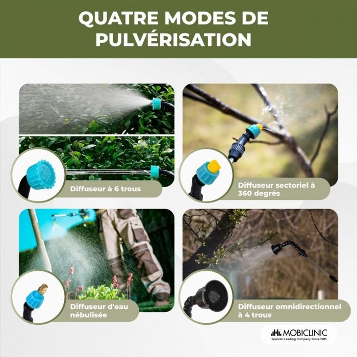 Total praktisch für Garten und Haus! Dieser elektrische Sprühgerät von Mobiclinic macht Gießen, Reinigen und Desinfizieren super einfach. Mit 4 austauschbaren Düsen: Rundstrahl, 360° Sektor, 6-Loch und Nebeldüse. Der Teleskopstab lässt sich von 60 auf 85 cm ausziehen - perfekt für hohe Pflanzen und schwer erreichbare Ecken. Kabellos mit 2500mAh Akku - 2-3 Stunden Laufzeit pro Ladung. Zwei Leistungsstufen für verschiedene Aufgaben. Mit 3m Schlauch für maximale Reichweite. Leicht, ergonomisch und selbstansaugend. Ideal für Pflanzen gießen, Terrasse reinigen, Haustiere baden oder Desinfizieren. Einfach per USB aufladen und loslegen. Vielseitiger als jede Gießkanne!