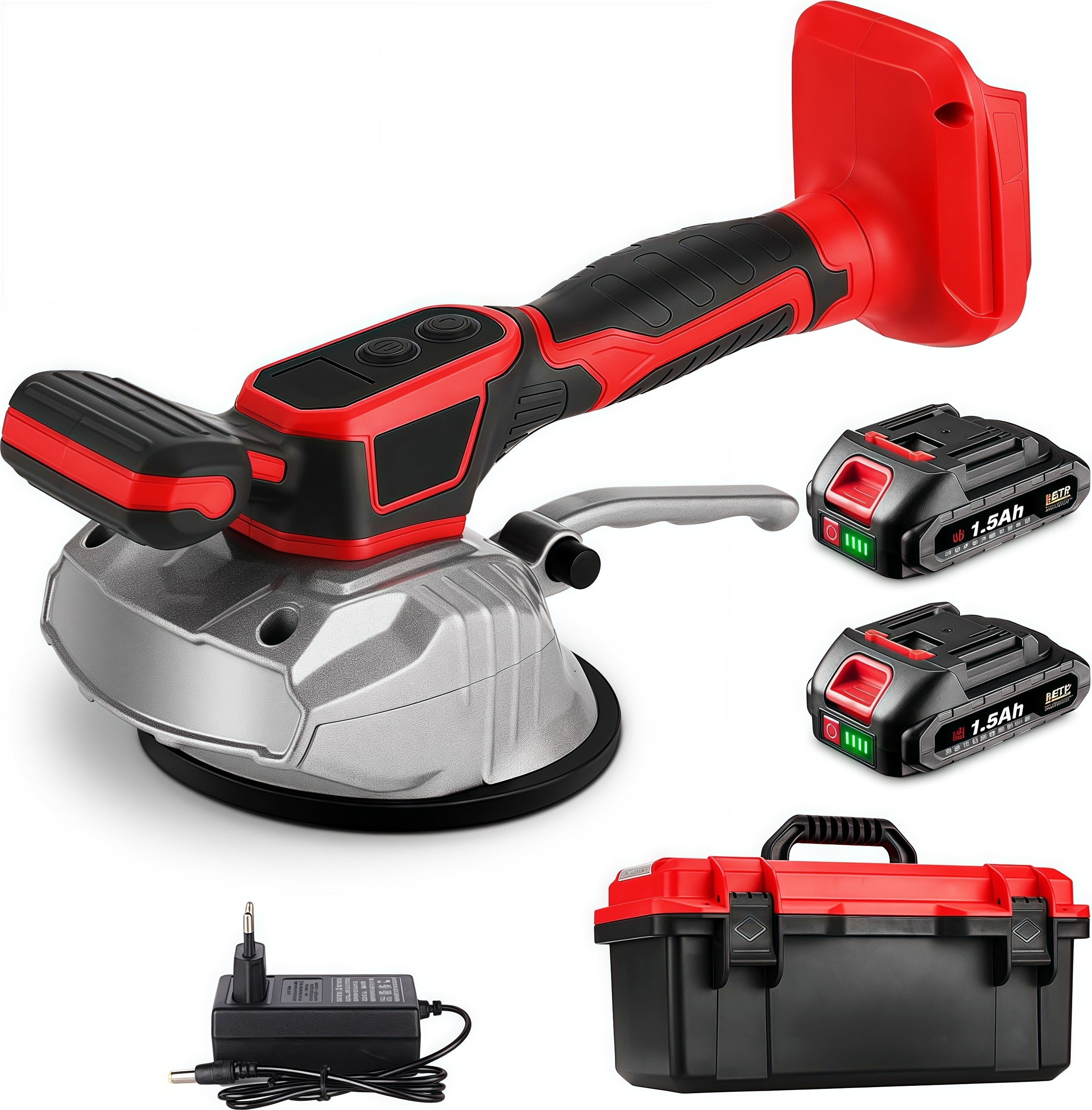 Oh man, Fliesenlegen kann so anstrengend sein - aber mit diesem Vibrationsgerät wird's zum Kinderspiel! Der 145mm Saugnapf saugt sich richtig fest und hält bis zu 150kg - da bewegt sich nichts mehr. Du hast 10 Geschwindigkeitsstufen von 100 bis 16.000 U/min zur Auswahl, perfekt abgestimmt auf jede Fliesengröße und Mörtelart. Das coole LCD-Display zeigt dir immer genau an, welche Stufe du eingestellt hast und wie viel Akku noch da ist. Und das Beste: Es ist komplett kabellos! Zwei 1500mAh Lithium-Akkus geben dir 4-6 Stunden Power, perfect für Baustellen ohne Steckdose in der Nähe. Der ergonomische Griff liegt super in der Hand, selbst bei langen Arbeiten. Mit dem Verriegelungsmechanismus musst du nicht ständig drücken - einfach einrasten und die Maschine arbeitet für dich. Ob große 240x240cm Fliesen oder kleine Formate - dieses Teil meistert alles. Die Vibrationen entfernen zuverlässig Luftblasen und sorgen für perfekten Halt. Endlich professionelle Ergebnisse ohne Risse und Unebenheiten! Ein Muss für jeden Heimwerker und Profi - damit wird Fliesenlegen zum echten Vergnügen!