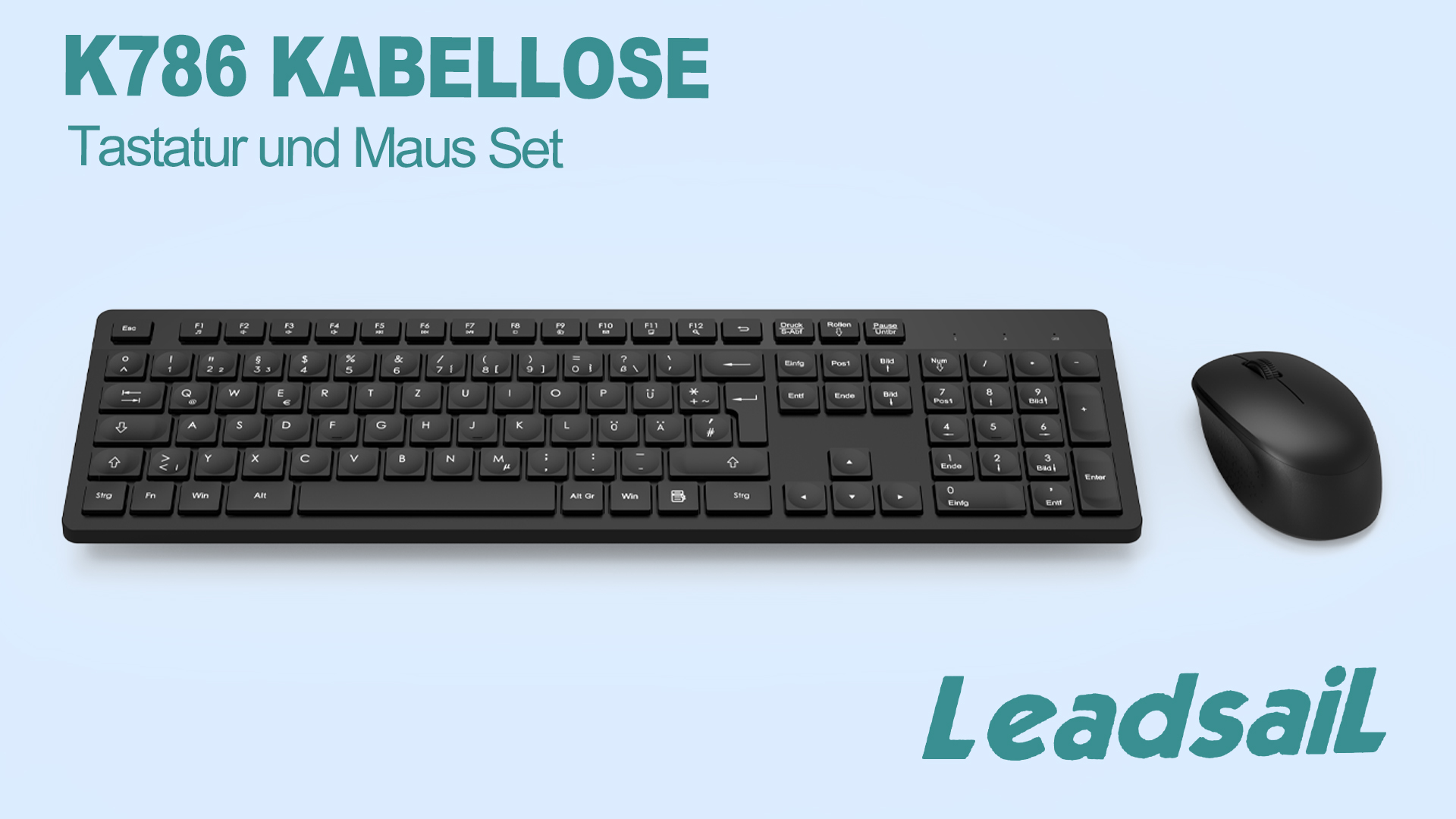 • LeadsaiL Kabelloses Tastatur-Maus Set - Deutsches QWERTZ Layout Silber