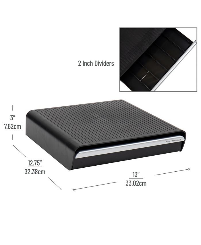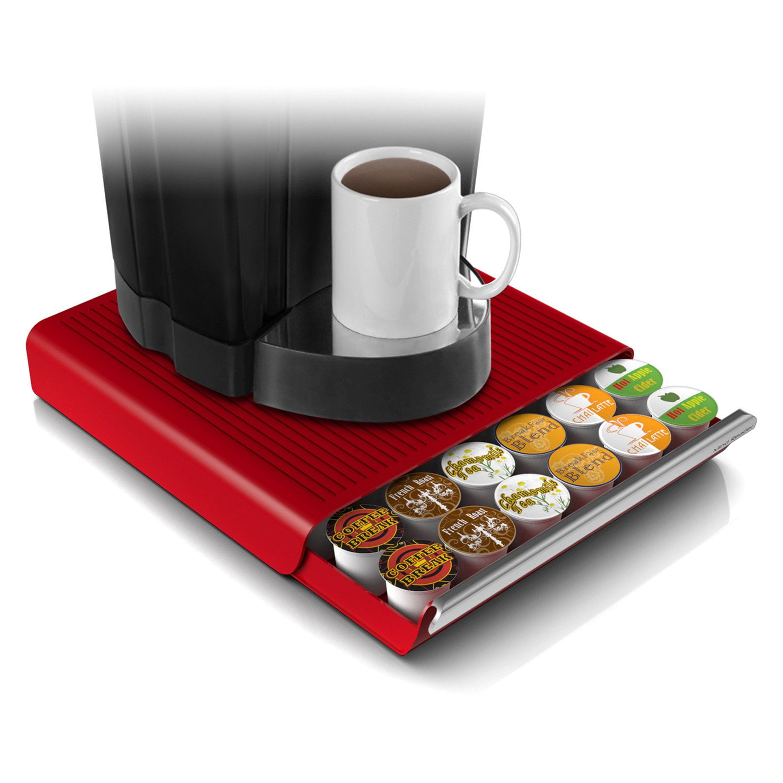 Ordnung auf der Küchenarbeitsplatte! Dieser geniale Kaffee-Pod-Organizer von Mind Reader hält bis zu 36 Kapseln (K-Cup, CBTL, Verismo, Dolce Gusto) griffbereit. Die praktische Schublade lässt sich leicht befüllen und du siehst sofort, welche Sorten du noch hast. Das beste: Deine Kaffeemaschine steht direkt oben drauf - das spart wertvollen Platz! Aus solidem Metall mit dekorativem Mesh-Design in Schwarz. Maße: 9,5L x 12,25B x 2,5H Zoll - kompakt aber stabil. Die Gumminoppen an der Unterseite verhindern Rutschen. Leicht zu reinigen und super für Zuhause oder Büro. Perfekt um verschiedene Sorten zu organisieren: Normal, koffeinfrei, Tee - alles hat seinen Platz. Leicht genug um ihn zu Partys oder Events mitzunehmen (nur 4,4 lbs). Vereinfache deine Kaffeeroutine und genieße mehr Ordnung in deiner Küche. Ein einfaches aber geniales Tool für alle Kaffee-Liebhaber!