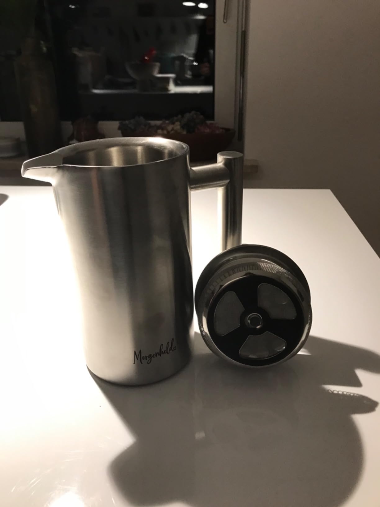 Entdecke die Kunst des Kaffeebrühens mit dieser eleganten French Press von figg! Die 600 ml fassende Kanne aus robustem Borosilikatglas widersteht hohen Temperaturen und ist kratzfest. Der feine Edelstahlfilter sorgt für einen vollmundigen Kaffee ohne lästige Rückstände in der Tasse. Einfach grob gemahlenen Kaffee einfüllen, mit heißem Wasser aufgießen, 4 Minuten ziehen lassen und den Filter langsam nach unten drücken - schon hast du einen aromatischen Kaffee, der seinesgleichen sucht. Die tropffreie Ausgießlippe macht das Servieren zum sauberen Vergnügen. Nicht nur für Kaffee geeignet - auch Tee, heiße Schokolade oder Kräuteraufgüsse gelingen damit perfekt. Die Reinigung ist denkbar einfach: einfach ausspülen und trocknen lassen. In schickem Schwarz ist sie ein Hingucker in jeder Küche. Für alle, die ihren Kaffee lieber selbst brühen statt aus der Maschine - hier kommt Geschmack pur!
