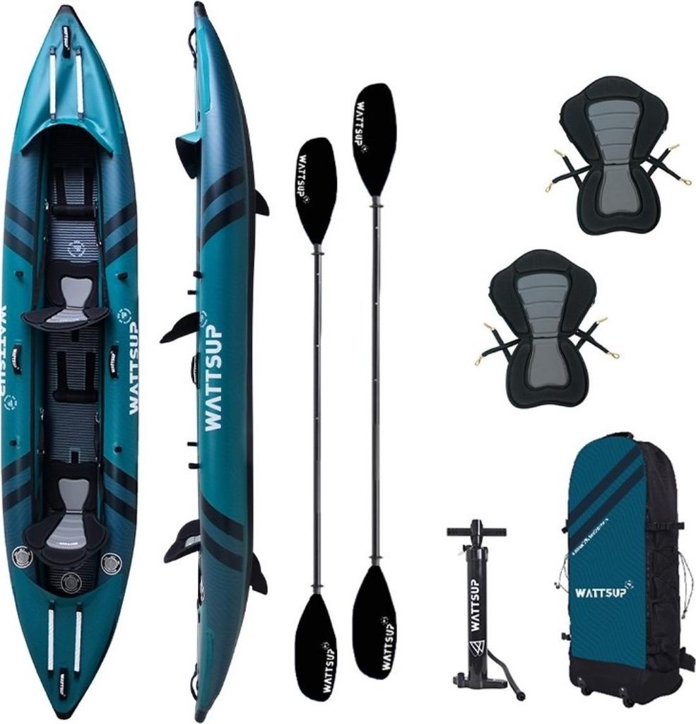 Wasserspaß für zwei! Das Brunelli 2-Personen-Kajak ist komplett aufblasbar und kommt als vollständiges Set. Mit 410cm Länge und extrabreiten 95cm super kippstabil - ideal für Einsteiger. Die Drop-Stitch-Technologie macht den Boden extrem steif für bestes Gleitverhalten. Hält bis zu 280kg aus! Im Lieferumfang: Kajak, 2 Paddel, 2 verstellbare Sitze mit Rückenlehne, Fußstützen, Hochdruckpumpe und Transportrucksack. Nur 15,5kg leicht, schnell aufgebaut und platzsparend zu verstauen. Perfekt für Seen, Flüsse und Küstengewässer - ob für Paare, Freunde oder Familien!