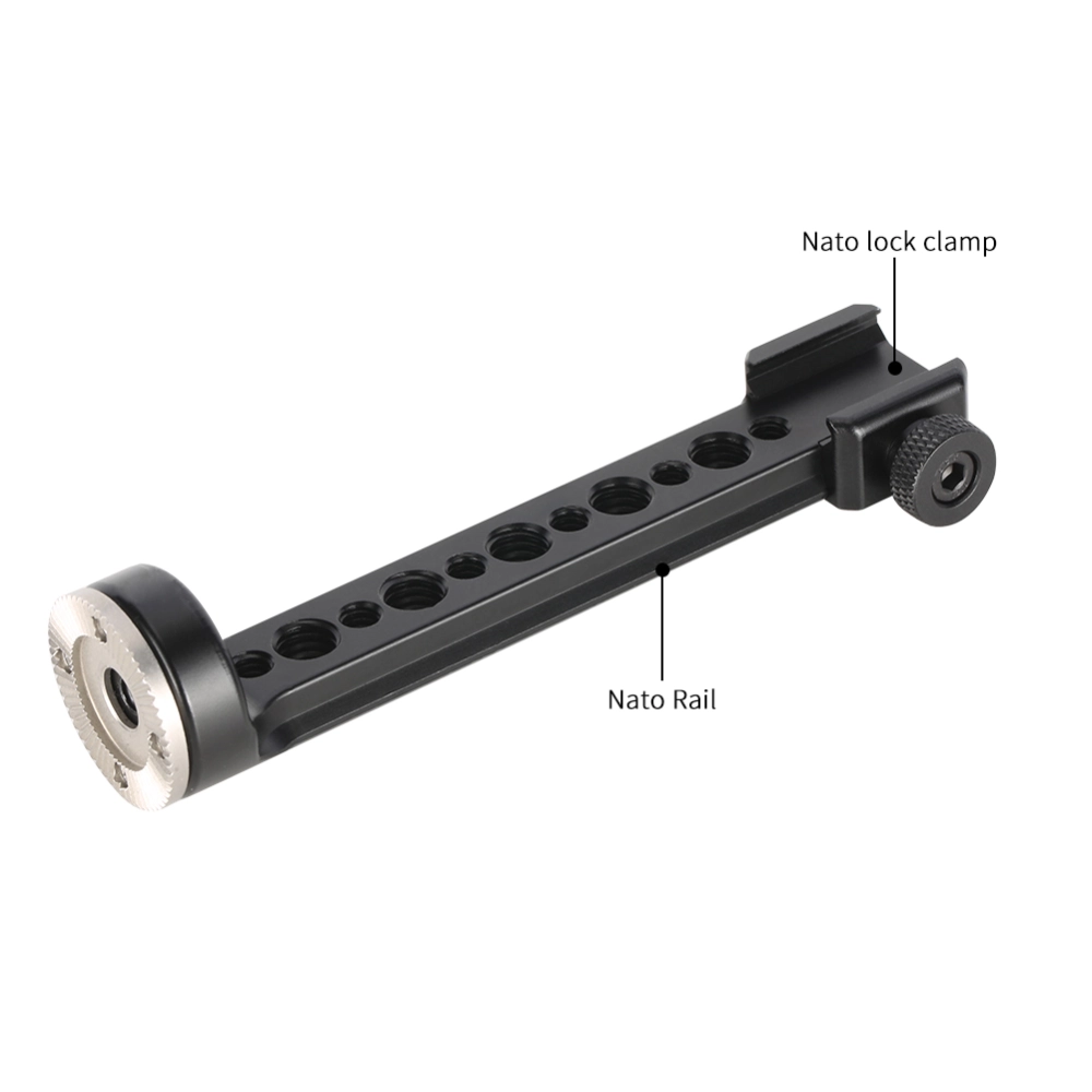 Du willst deine Kamera-Ausrüstung erweitern? Dieser NICEYRIG Cheese Bar ist genau das richtige! Mit 1/4 und 3/8 Gewindelöchern passt er an fast jedes ARRI Locating Hole. Die 100mm NATO-Schiene nimmt Schnellspanner-Zubehör wie Magic Arms, Monitore oder Mikrofone auf. Hergestellt aus robuster Aluminiumlegierung, nur 6mm dick aber super stabil. Trägt bis zu 3kg Zubehör - mehr als genug für die meisten Aufbauten. Einfach mit einer 3/8 Schraube an Kamerakäfig, oberen Griff oder Top Plate montieren und schon kannst du dein Equipment erweitern. Perfekt für Filmemacher, YouTuber und alle, die ihre Kamera flexibel ausbauen wollen!