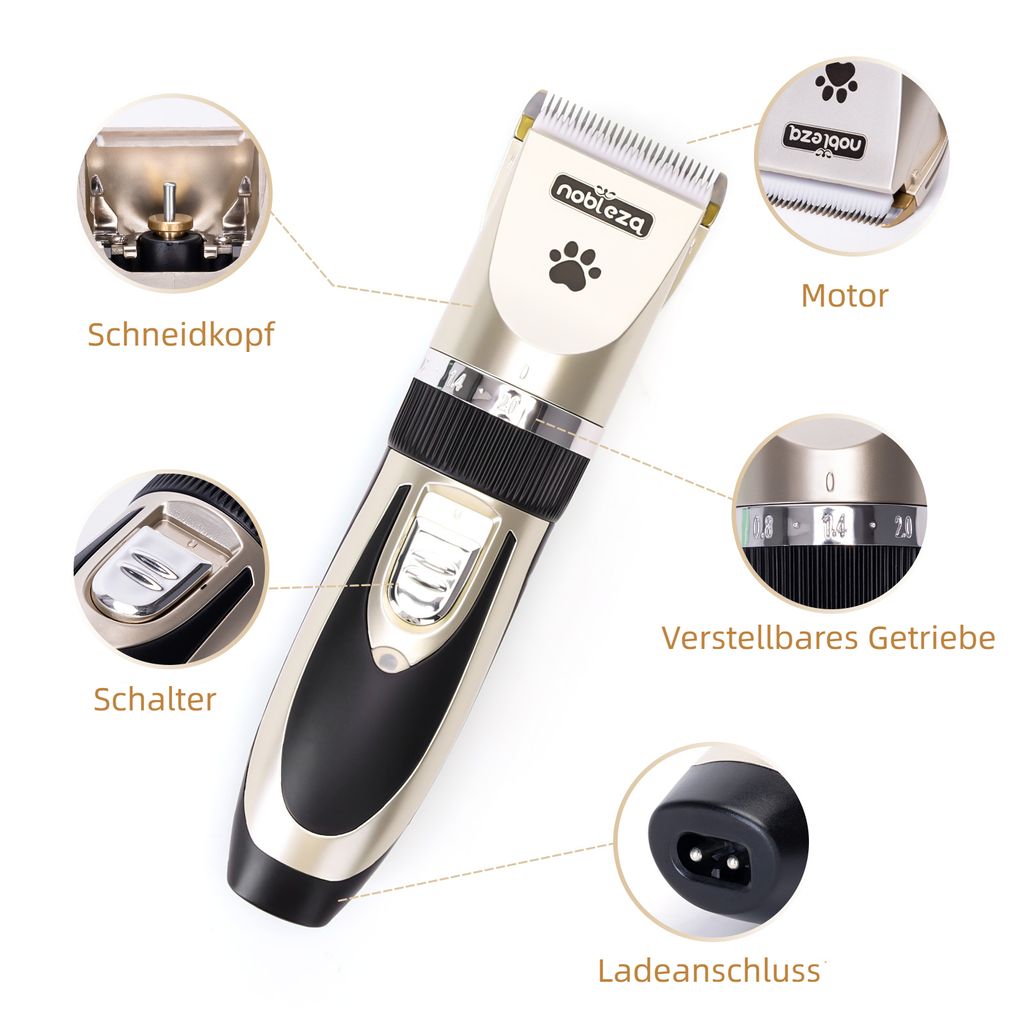 Ideal für Hunde, Katzen und sogar Kaninchen. Ermöglicht unterschiedliche Schnittlängen und Styling-Optionen. Aus robustem Kunststoff, sanft zur Tierhaut.