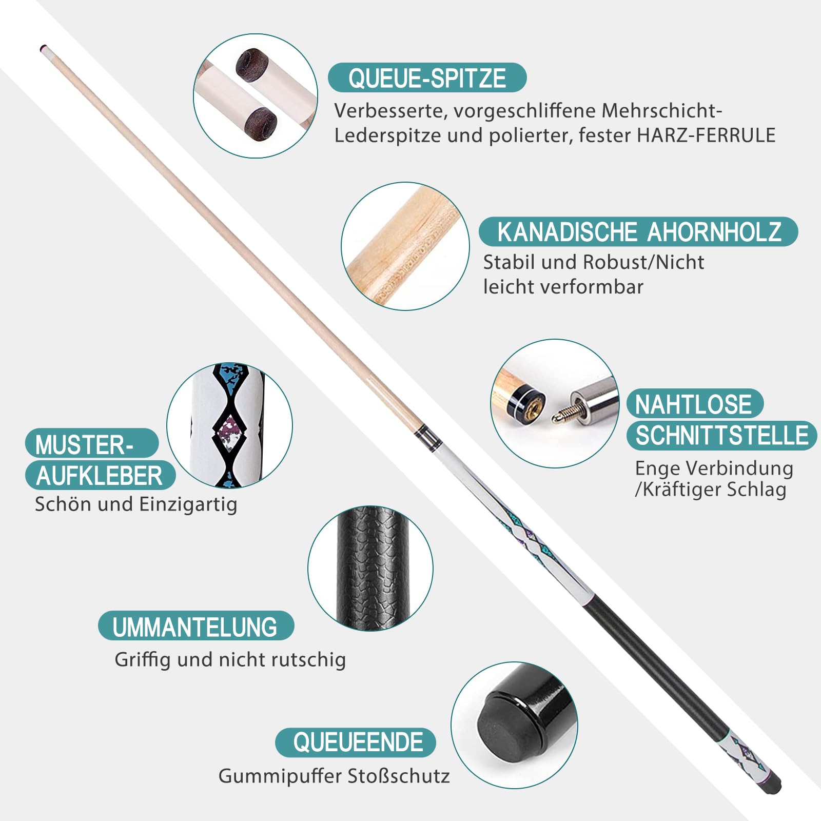 • Kmise Billardqueue-Set - Kanadischer Ahorn, 18-21oz, Mit Kreide & Handschuhen