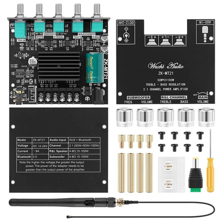 Musikliebhaber aufgepasst! Dieses Bluetooth 5.0 Verstärkerboard bringt richtig Power in deine Sound-Anlage. Mit 2.1 Kanälen - also Stereo plus Subwoofer - für satten, voluminösen Sound. 2x 50W für die Hauptkanäle plus 100W für den Bass - da wackelt dir das Haus!