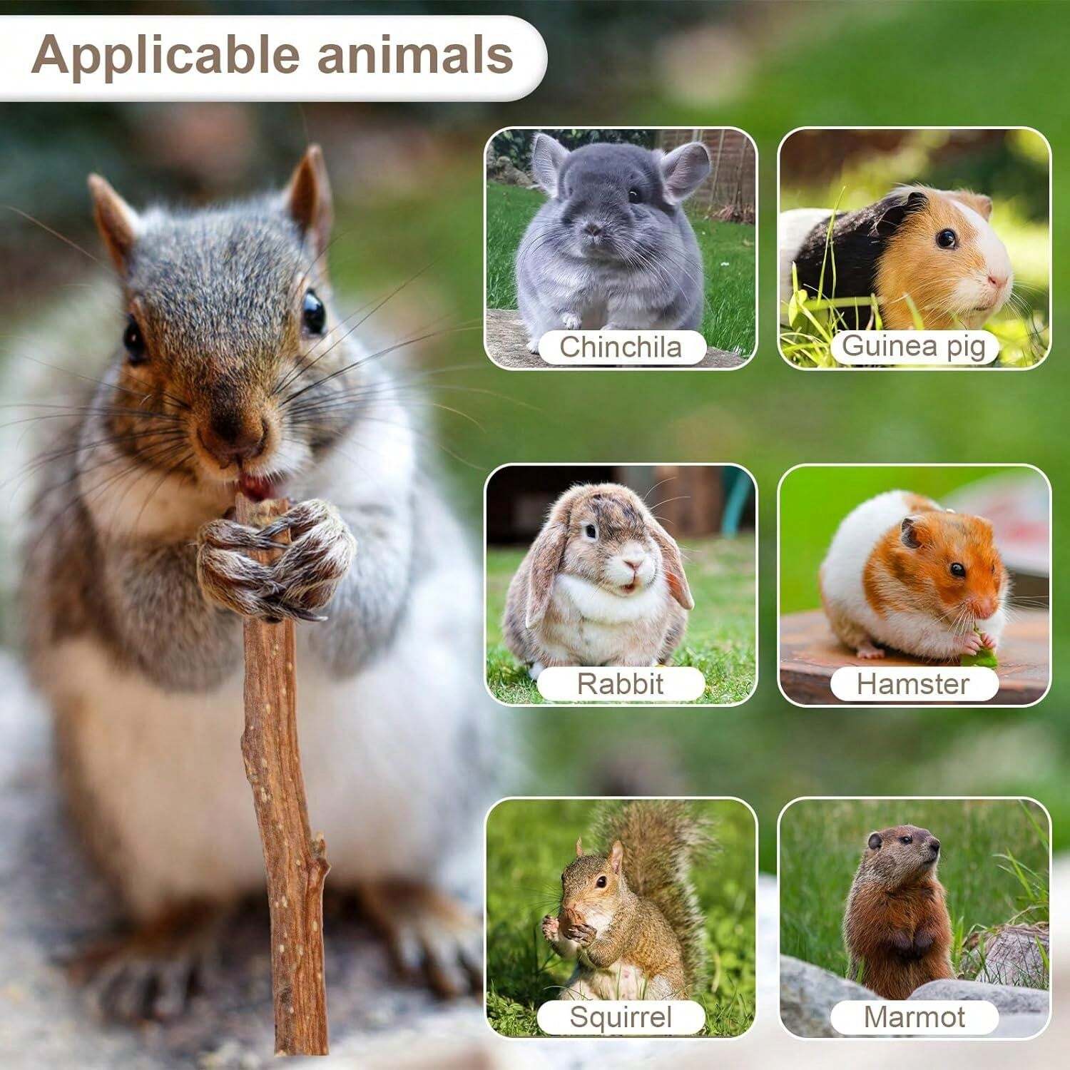 Gesunde Kaustangen für deine Kleintiere! Dieses Set mit 18 Stück (je 6,7x15cm) ist perfekt für Kaninchen, Meerschweinchen, Hamster und andere Nager. Mit natürlichem Blütenduft der die Tiere anlockt. Die Stangen helfen bei der Zahnpflege und beugen übermäßigem Zahnwachstum vor. Verschiedene Geschmacksrichtungen sorgen für Abwechslung und beugen Futterverweigerung vor. Fördert natürliches Kauverhalten und beschäftigt deine Haustiere. Aus natürlichen Materialien, sicher und gesund. Deine Tiere werden diese leckeren Kau-Snacks lieben!
