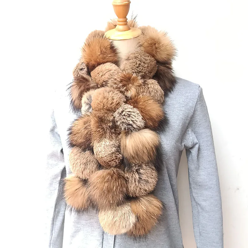 • Frauen Winter-Schal Aus Kaninchenpelz - Elastisches Stirnband & Schal In Einem (42cm)