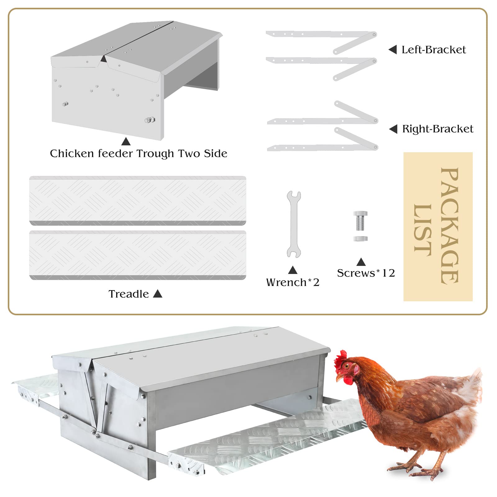 Mensch, dieser automatische Hühnerfutterautomat ist genau das Richtige für alle Hühnerhalter! Mit satten 10lbs (4,5kg) Futterkapazität musst du nicht jeden Tag nachfüllen. Die 10 Futteröffnungen sorgen dafür, dass mehrere Hühner gleichzeitig fressen können - kein Gedrängel mehr! Die verstellbaren Beine lassen sich auf 10cm, 18cm oder 25cm Höhe einstellen, perfekt für Hühner, Enten, Gänse oder Truthähne. Aus Metall gefertigt, hält der Futtertrog richtig was aus. Montage ist super einfach - nur die vier Beine anbringen und fertig. Ob im Hühnerstall, Freigehege oder auf dem Bauernhof: Dein Geflügel hat immer Zugang zu Futter, ohne dass du ständig kontrollieren musst. Ein echter Game-Changer für die Geflügelhaltung!