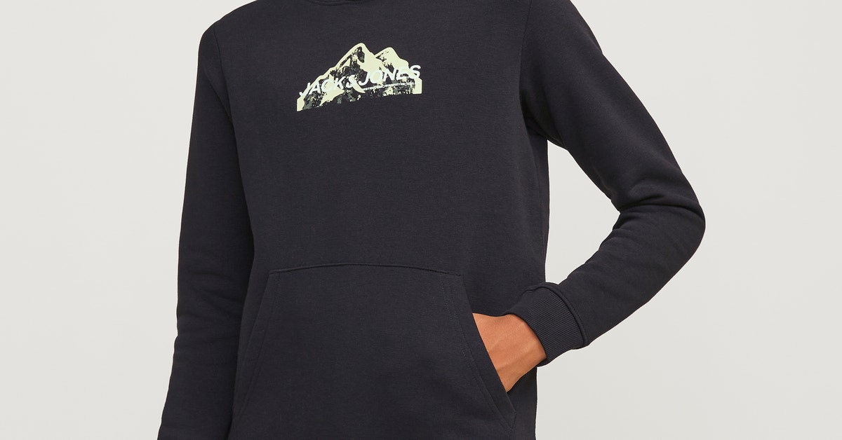 Total cooler Kapuzenpullover von Jack & Jones Junior! Der JJLUKE Sweat Hood ist perfekt für Teens, die stylisch und bequem unterwegs sein wollen. Mit 70% Baumwolle und 30% Polyester fühlt sich das Teil superweich an und hält auch bei aktivem Spielen gut durch. Der Gummidruck-Aufdruck bleibt schön weich und die Kapuze sitzt perfekt. Normal geschnitten - nicht zu eng, nicht zu weit. Ideal für den Frühling oder kühlere Sommertage. Ungebürsteter Sweatstoff mit glatter Oberfläche und Schlaufen innen für extra Komfort. Macht sich super mit Jeans oder Jogginghose. Für Jungs von 3-16 Jahren, die modisch unterwegs sein wollen. Einfach waschen und tragen - ein echter Allrounder für die Schule oder Freizeit!