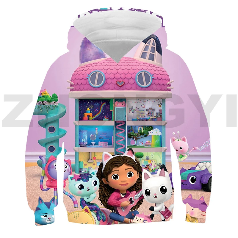 Für alle kleinen Gabby's Dollhouse-Fans! Dieser niedliche Kapuzenpullover in pastell-lila ist genau das Richtige für deine Tochter. Aus weichem, griffigem Baumwollstoff - super bequem für den Alltag. Vorne prangt ein bunter Aufdruck mit Gabby und ihrem süßen Kätzchen. Die Rippbündchen an Ärmeln und Saum sorgen für perfekten Sitz, und die Kapuze hält an kühleren Tagen schön warm. Einfach über den Kopf ziehen - kein Reißverschluss, kein Stress! Perfekt für den Kindergarten, Familienausflüge oder einfach zum Spielen zu Hause. Deine Kleine wird sich riesig freuen - versprochen!