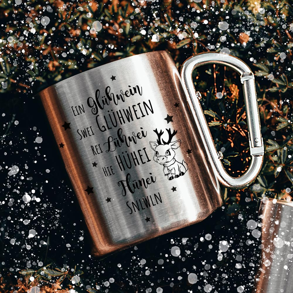 • Edelstahltasse Mit Karabiner "Rudelführer" - 280ml Campingtasse Für Outdoor