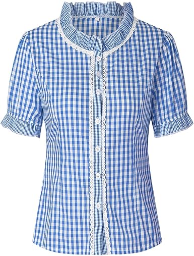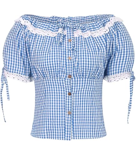 Oktoberfest, aber make it fashion! Diese Trachtenbluse ist der absolute Hit für jedes Volksfest oder einfach für alle, die den Trachten-Style lieben. Der karierte Stoff sieht super authentisch aus, und die Flügelärmel geben dem ganzen eine richtig elegante Note. Der V-Ausschnitt mit der spitzen Häkelspitze im Brustbereich ist einfach wunderschön und betont die weibliche Silhouette. Aus hochwertigem Terylen gefertigt, ist die Bluse angenehm auf der Haut und hält auch bei intensivem Tragen super. Die taillierte Passform sitzt einfach perfekt! Und das retro-inspired Halteband auf der Brust gibt nochmal das gewisse Etwas. Aber das Beste: Man kann sie nicht nur zum Oktoberfest tragen! Sie passt super zu Lederhosen, aber auch zu jeder Jeans oder Chino für den Alltag. Ob zur Arbeit, beim Wandern oder auf dem nächsten Volksfest - diese Bluse macht immer eine gute Figur. Die Verarbeitung ist absolut top, und der Stoff ist langlebig und pflegeleicht. Ein Kleidungsstück, das man Jahre lang tragen kann - und das bei jedem Anlass!