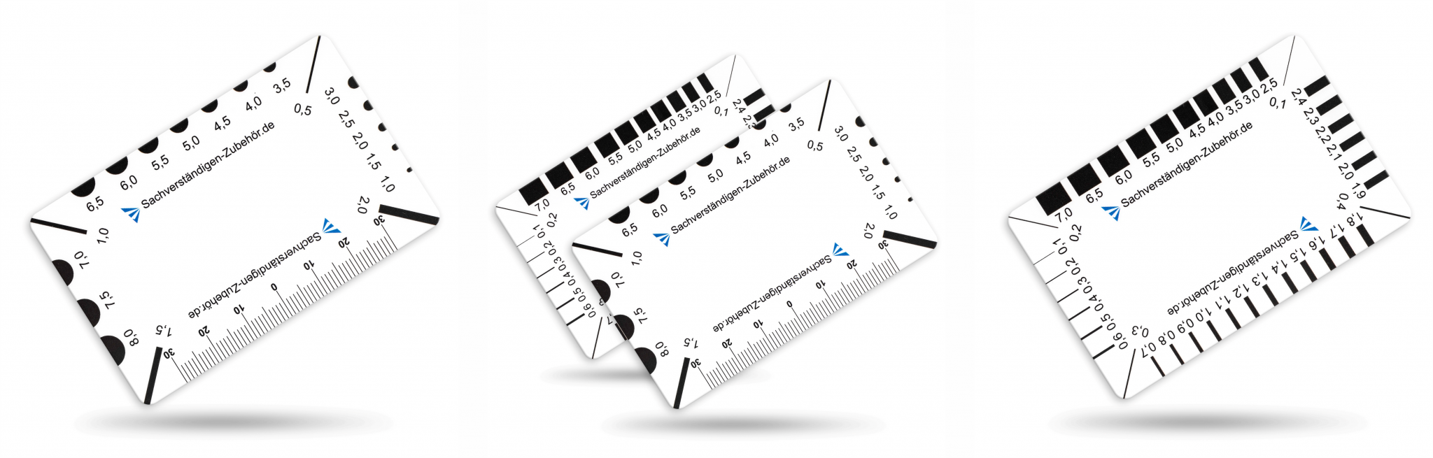 Professionelles Werkzeug für Bau-Gutachter! Dieses 100-teilige Set mit Rissmonitor-Karten macht die Rissbreitenmessung zum Kinderspiel. Misst haargenau von 0,1 mm bis 7 mm - perfekt für die Arbeit von Sachverständigen. Jede Karte ist 0,76 mm stark - so stabil wie eine Kreditkarte! Doppelseitig bedruckbar mit deinem Logo - ideal als Werbegeschenk für Kunden. Made in Germany - Qualität die überzeugt! Einfach in die Tasche stecken - immer griffbereit bei Baubegehungen. Perfekt für Handwerker, Architekten und Bausachverständige. Die Karten sind wiederverwendbar und extrem langlebig. Macht jede Messung präzise und dokumentierbar! Einfach bestellen und professionell messen.