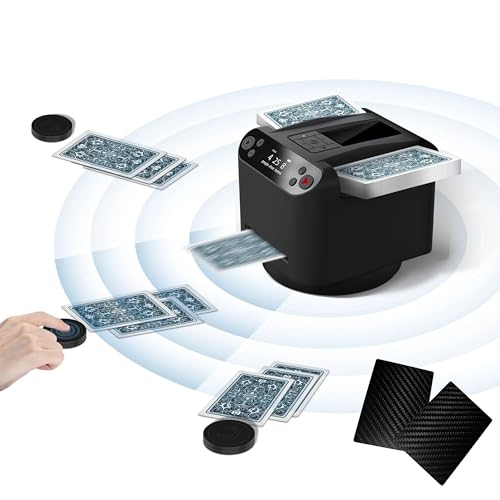 Schluss mit mühsamem Kartenmischen! Diese elektrische Kartenmischmaschine von Tixexo erledigt die Arbeit für dich - schnell, gründlich und fair. Mit leistungsstarkem Motor, der unter 75,5 dB bleibt und somit kaum stört. Der eingebaute 2000mAh Akku lässt sich aufladen und reicht für sage und schreibe 2500 Mischvorgänge! Super große Kapazität: Mischt sogar zwei Kartenspiele gleichzeitig. Perfekt für Pokerabende, Blackjack, Bridge oder jeden Spieleabend mit Freunden. Einfach Karten einlegen, Knopf drücken und in Sekunden sind die Karten perfekt gemischt. Macht jeden Spieleabend noch professioneller!