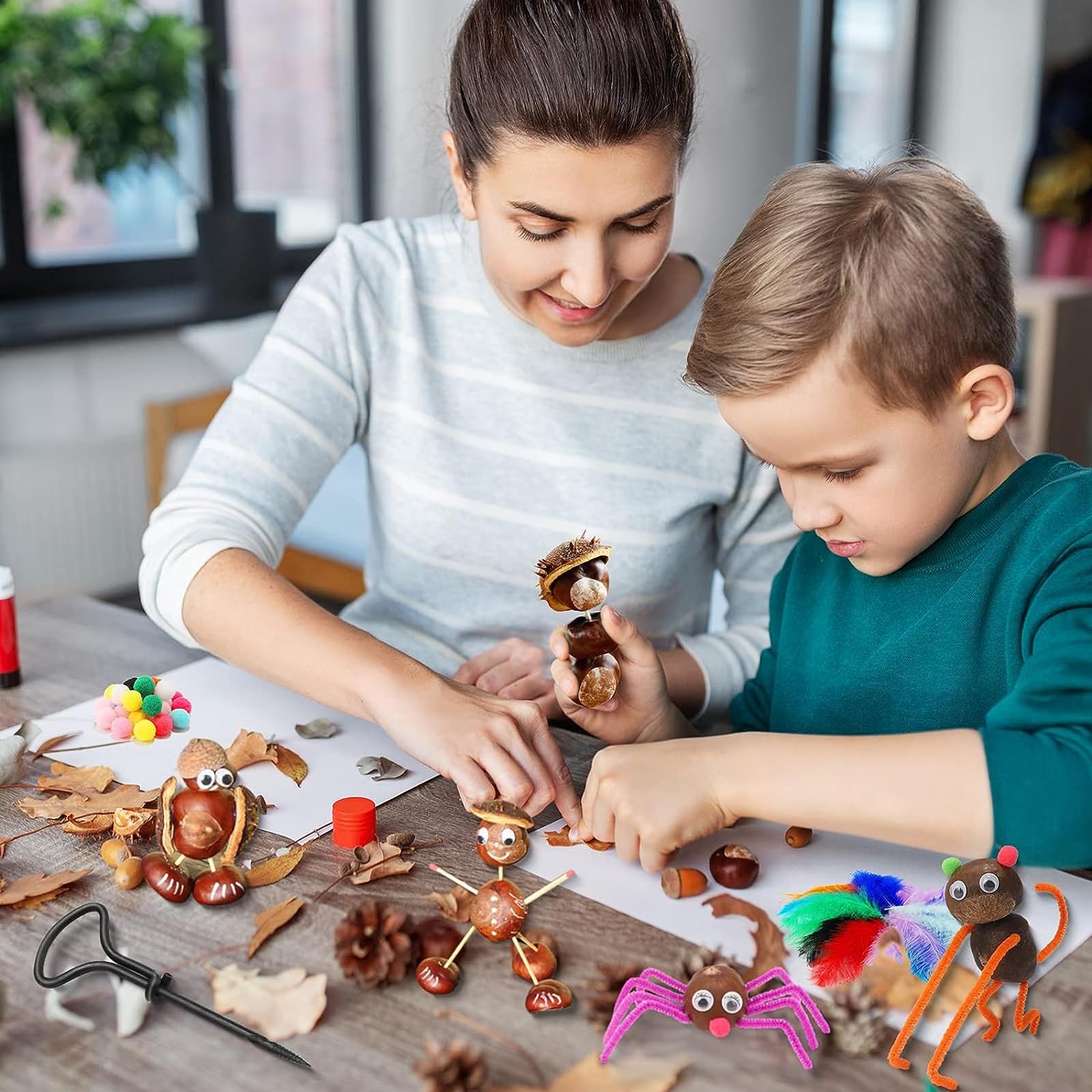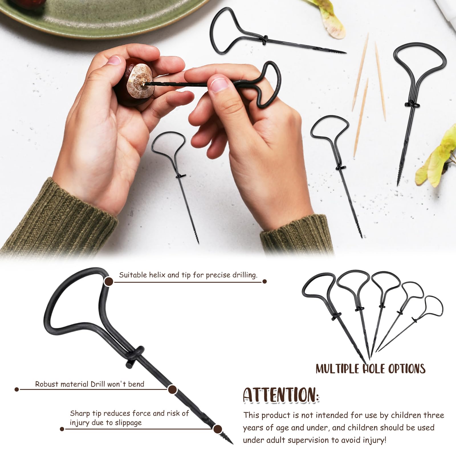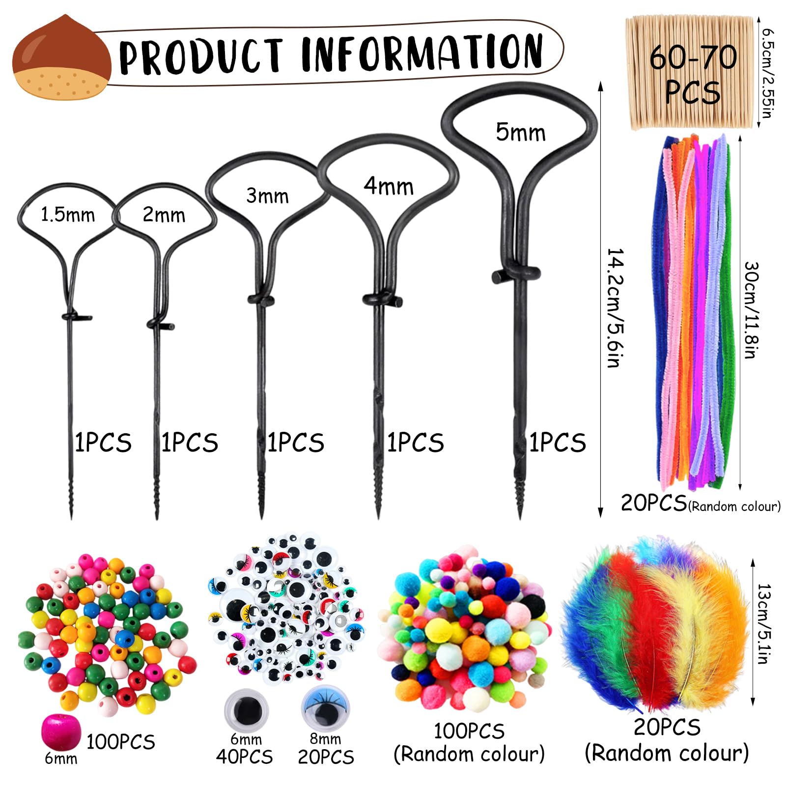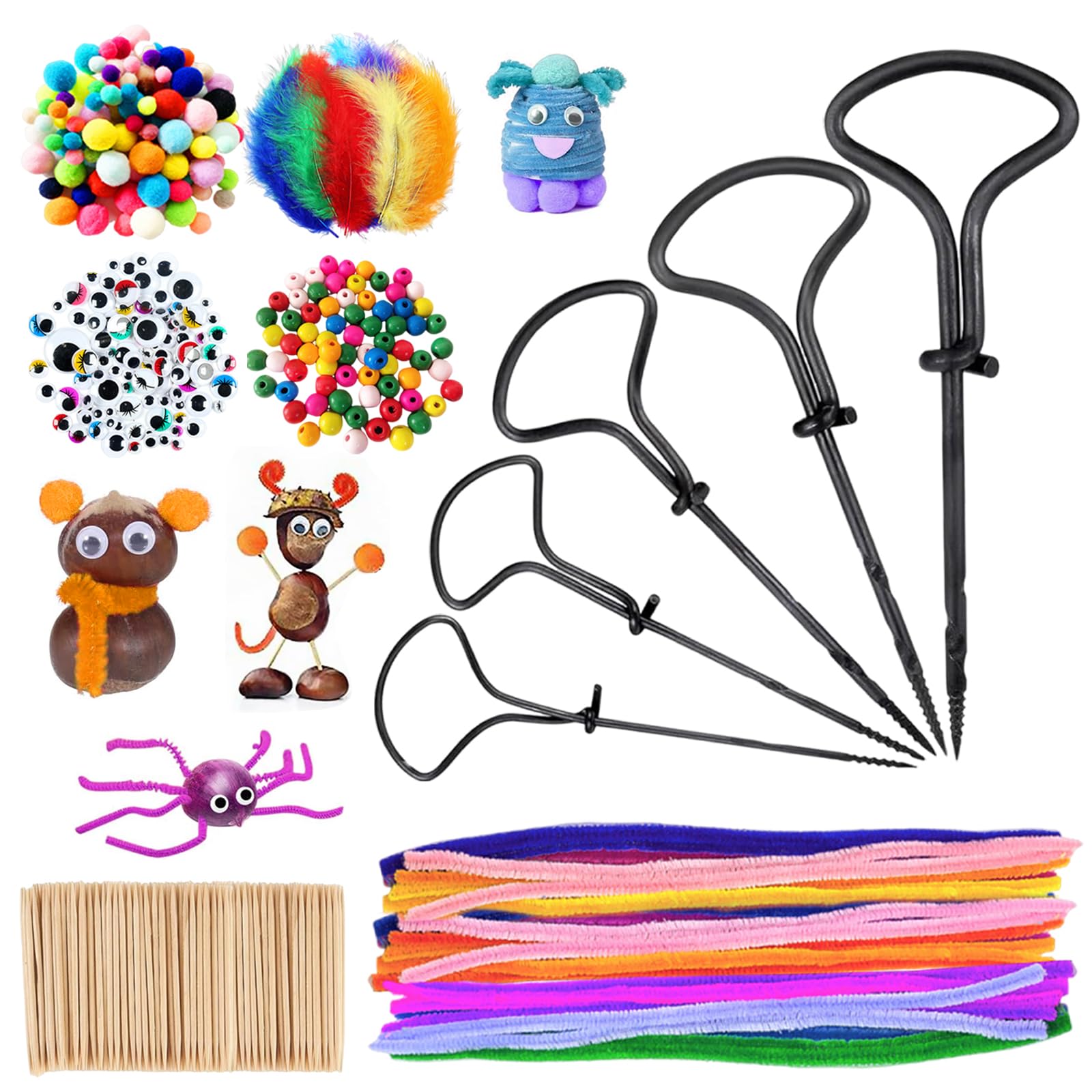 Was für ein mega Bastelspaß für den Herbst! Dieses Kastanien-Set hat alles, was kleine und große Bastelfans brauchen. Mit 5 verschiedenen Bohrern in 1,5mm bis 5mm Stärke - damit lassen sich Löcher in Kastanien, Eicheln und Nüsse ganz easy bohern. Der praktische Kastanienhalter sorgt dafür, dass nichts verrutscht. Und dann geht's los: Mit den 140 Zahnstochern, 20 Federn, 30 Pompons, 40 Wackelaugen und 20 Pfeifenreinigern entstehen die lustigsten Figuren! Ob Tiere, Monster oder bunte Ketten - der Kreativität sind keine Grenzen gesetzt. Perfekt für verregnete Herbsttage oder den nächsten Bastelnachmittag mit Freunden. Das Metall der Bohrer ist rostfrei und bricht nicht so schnell. Einfach Kastanien sammeln und loslegen - das macht der ganzen Familie Spaß!