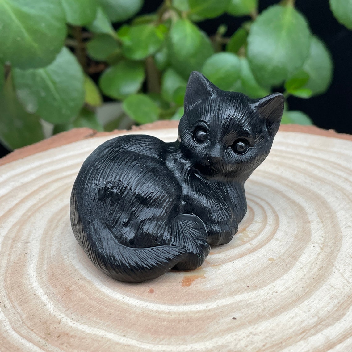 Hey, diese süße Katzenfigur aus schwarzem Obsidian ist einfach zauberhaft! Handgeschnitzt und etwa 5 cm groß, passt sie perfekt in die Tasche oder als Deko auf den Schreibtisch. Jedes Stück ist ein Unikat - die Größe variiert leicht zwischen 48-52 mm Länge und 23-26 mm Höhe, aber das macht den Charme erst aus. Obsidian soll positive Energie bringen und auf emotionaler, mentaler und spiritueller Ebene wirken. Stell sie ins Büro, ins Wohnzimmer oder sammle mehrere - sie sehen toll zusammen aus. Die glatte Oberfläche fühlt sich edel an und die sitzende Pose strahlt Ruhe aus. Super als Geschenk für Katzenliebhaber oder für dich selbst. Einfach hinstellen und sich über die schöne Energie freuen. Perfekt für alle, die was Besonderes suchen, das nicht nur gut aussieht, sondern auch positive Vibes verbreitet. Einfach niedlich und voller Bedeutung!