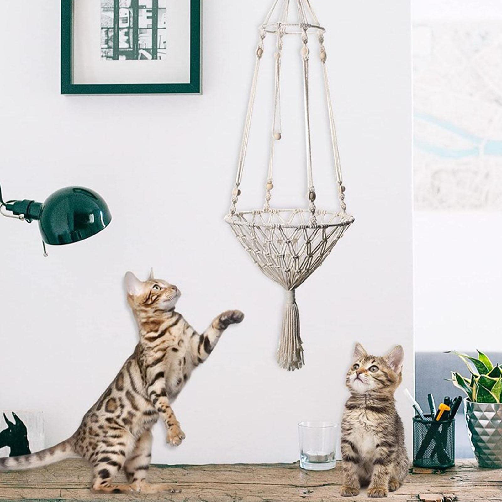 • Masoog Katzen Hängematte Makramee - Geflochtener Schlafkorb Aus Baumwollseil