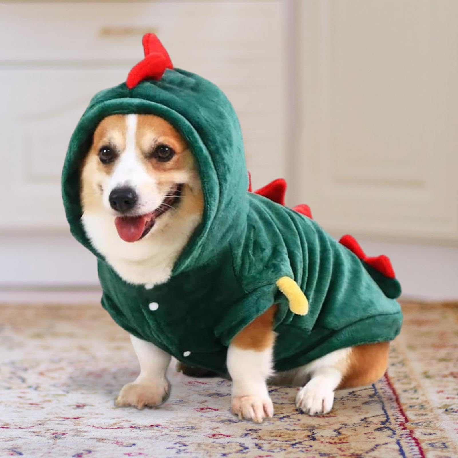 Oh mein Gott, wie süß ist das denn? Dieser Dino-Hoodie verwandelt deinen Hund oder deine Katze in einen urzeitlichen Liebling! Aus superweichem Korallenvlies, damit es deinem Tierchen auch richtig kuschelig warm ist. Die süße Kapuze mit Dino-Kopf und der niedliche Schwanz machen einfach Laune. Es gibt fünf Größen von XS bis XL - einfach Brustumfang und Rückenlänge messen (nicht nach Gewicht gehen!). Die Verarbeitung ist top: professionelle Nähte, waschbar bei niedrigen Temperaturen und richtig langlebig. Perfekt für Fotoshootings, Halloween oder einfach so für den Style. Dein Tier wird der Hit im Park! Und keine Sorge, das Anziehen geht easy - die Qualität stimmt einfach. Mach deinen Liebling zum Dino-Star!