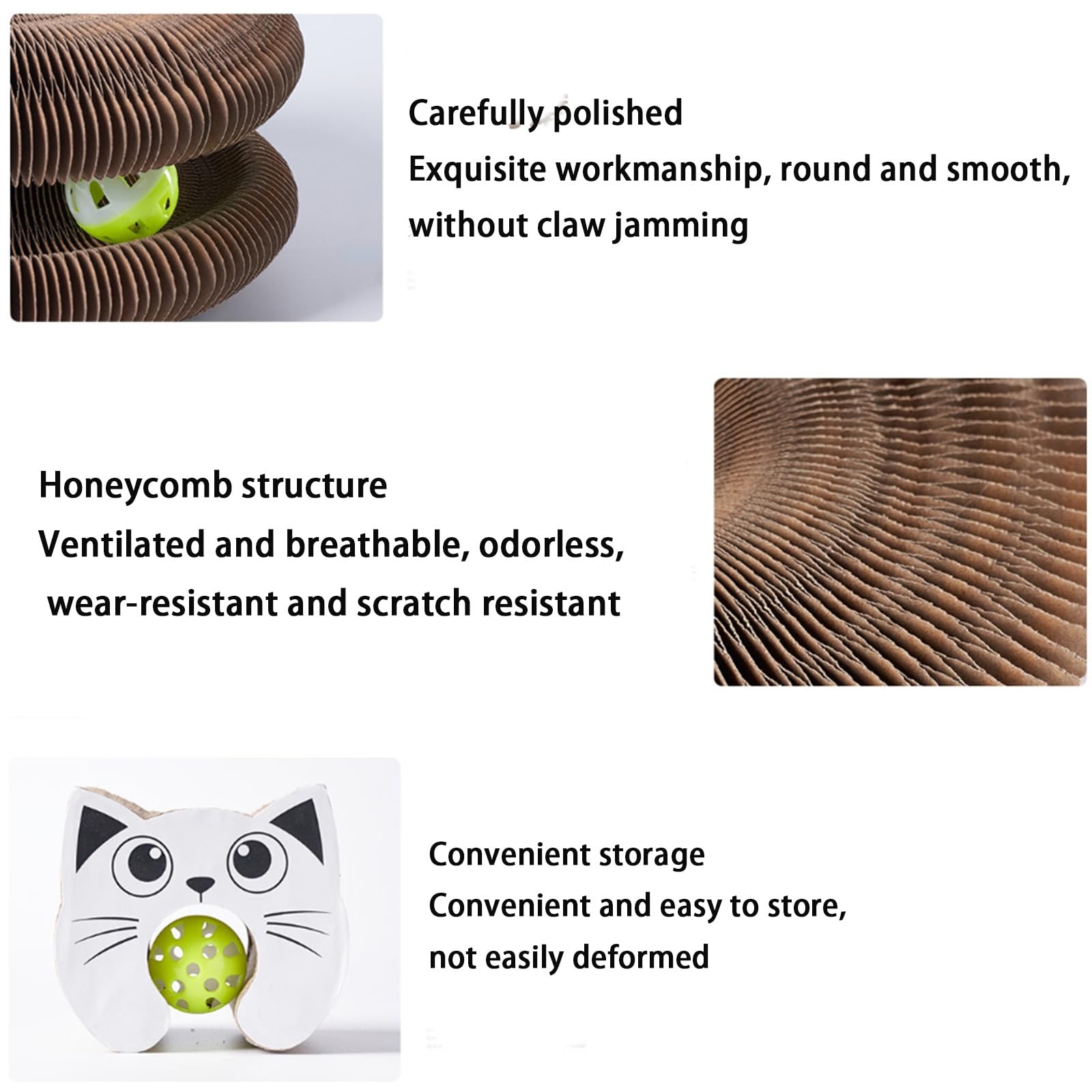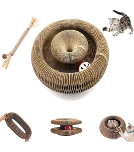 Der ultimative Spielspaß für deine Katze! Dieser Kratzkokon ist ein echtes 4-in-1 Wunder: Kratzbrett, Spielzeug, Bett und Entspannungsplatz in einem. Das geniale Akkordeon-Design lässt sich ganz einfach falten und in verschiedene Formen bringen - mal als Tunnel, mal als gemütliches Bett. Mit integrierter Kugelbahn, die den Jagdinstinkt weckt und für stundenlange Beschäftigung sorgt. Aus robustem Recyclingkarton gefertigt, beidseitig nutzbar und hält bis zu 6x länger als normale Kratzbretter. Schützt deine Möbel vor Krallen und gibt deiner Katze einen eigenen Rückzugsort. Perfekt gegen Langeweile und Stress - deine Katze wird es lieben! Einfach aufstellen und dem Katzenglück zusehen!