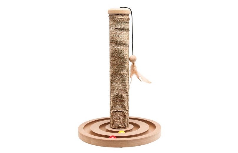 Deine Katze wird dieses coole Raketen-Spielzeug lieben! Mit Kugelbahn, Sisal-Kratzstamm und Federball - alles in einem. Die Kugeln rollen leise, der Federball fliegt und der Kratzstamm rettet deine Möbel. Aus massivem Holz, super stabil und kippsicher. Der natürliche Sisal ist sicher für deine Samtpfote. Einfach zusammenzubauen, kein Werkzeug nötig. Perfekt um deine Katze zu beschäftigen und gleichzeitig deine Möbel zu schützen. Das ideale Geschenk für alle Katzenliebhaber - deine Katze wird's dir danken!