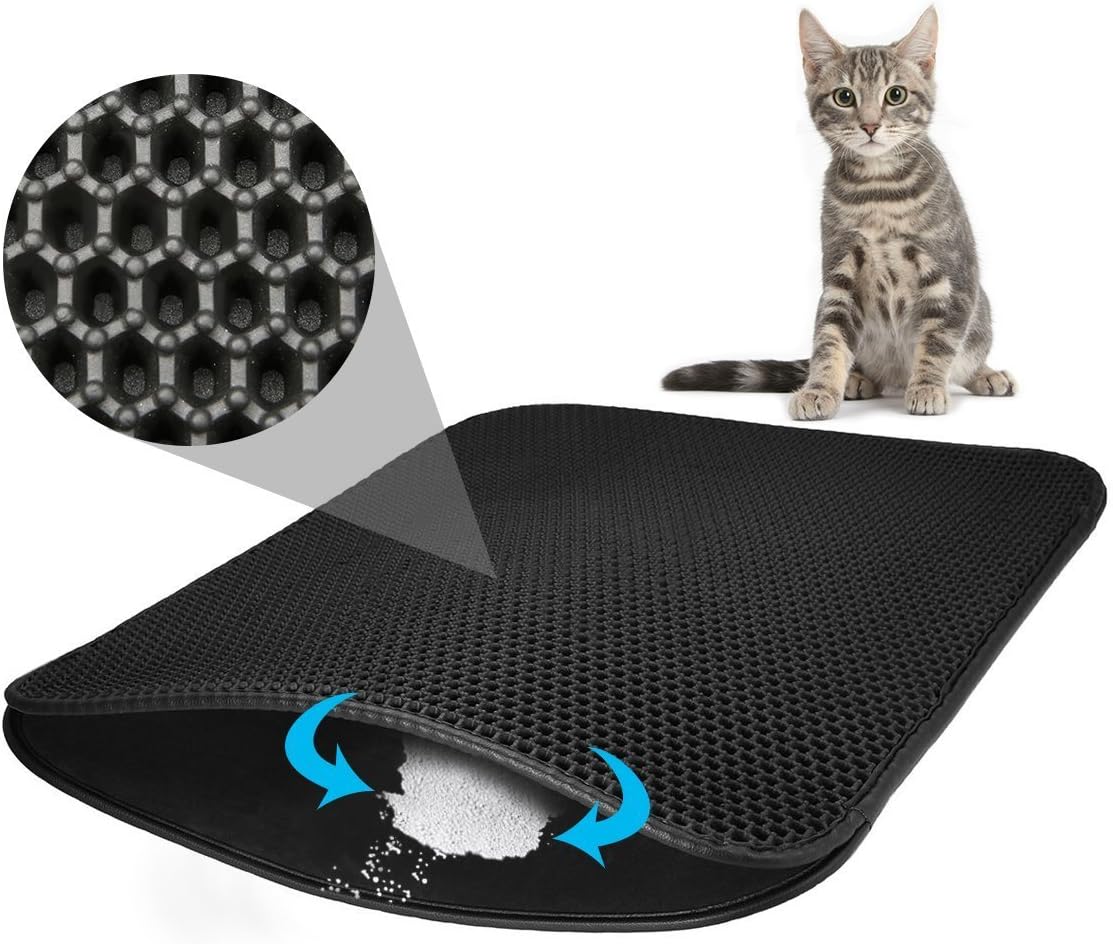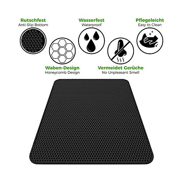 Endlich keine Streu-Reste mehr in der ganzen Wohnung! Diese Katzenklo Matte mit cleverem Waben-Design fängt alles auf was deine Katze aus dem Klo trägt. 60x45cm groß - bietet reichlich Platz um das Katzenklo. Das doppelschichtige Design ist genial: Die obere Wabenschicht fängt die Streu-Krümel auf, die untere Schicht ist komplett wasserdicht - kein Urin kommt auf deinen Boden! Aus robustem Material - hält auch scharfen Krallen stand. Rutschfeste Unterseite - verrutscht nicht beim Benutzen. Reinigung? Super einfach: Einfach über dem Mülleimer ausschütteln oder mit Wasser abspülen. In dezentem Grau - passt zu jedem Badezimmer oder Wohnbereich. Perfekt für Einzelkatzen oder Mehrkatzen-Haushalte. Mach die Katzenklo-Umgebung sauberer und dein Leben entspannter - damit hast du weniger Putzarbeit und mehr Zeit zum Kuscheln mit deinem Stubentiger!
