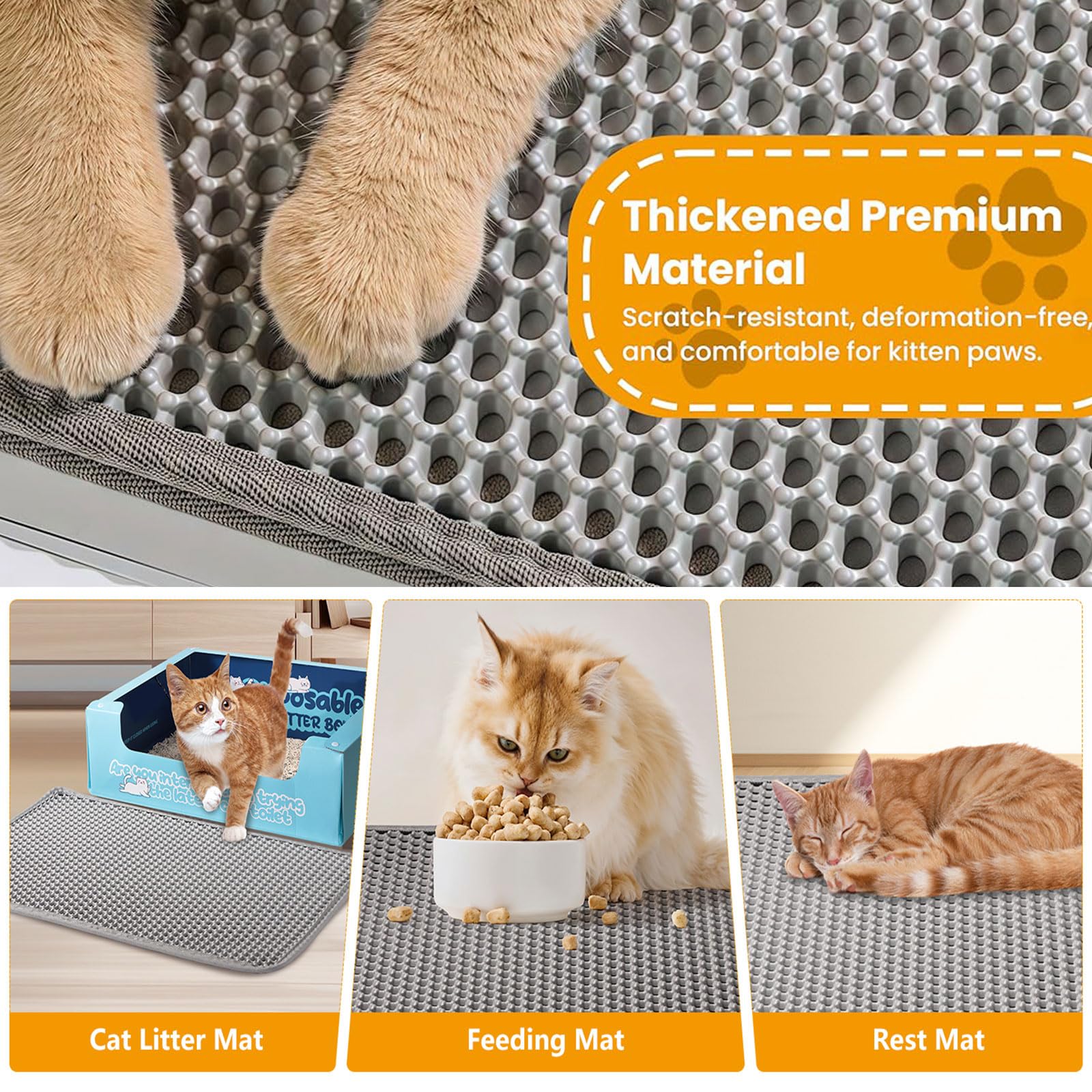 • Asoway Katzenklo Matte 80x60cm - Doppelschicht Waben Design Wasserdicht & Rutschfest
