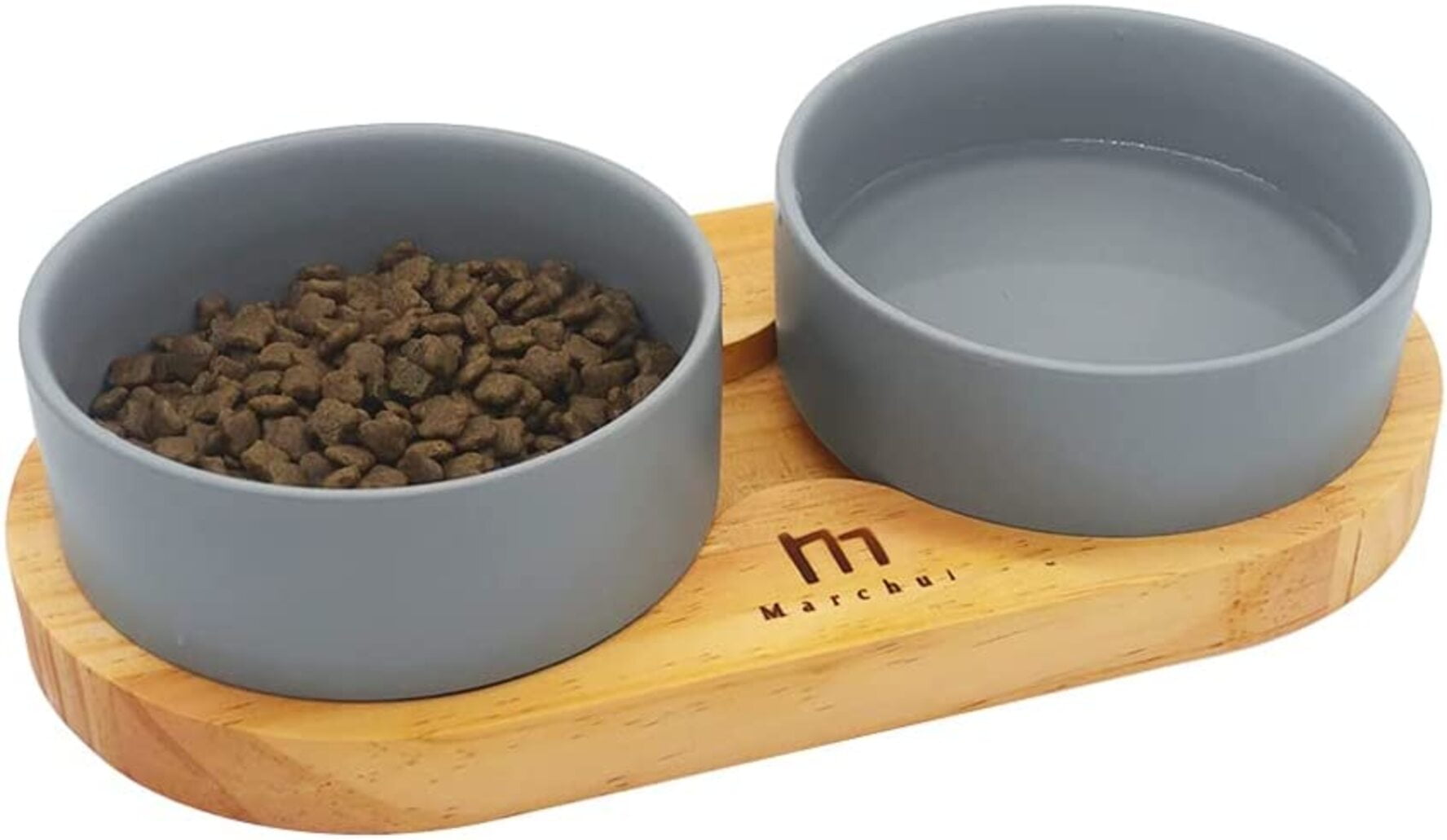 WAONIQ Keramik Katzennapf 2-tlg. Mit Holzständer - 400ml Futternapf Rutschfest