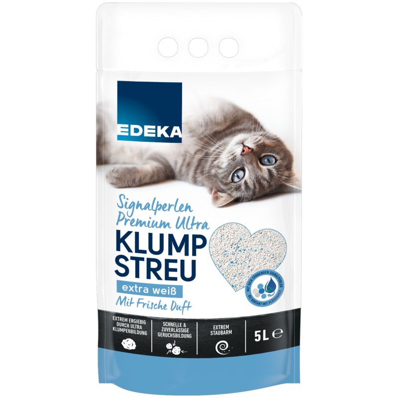 Die beste Pfote für deine Samtpfote! Edeka Signalperlen Ultra Klumpstreu bildet superfeste Klumpen, die sich leicht entfernen lassen. Die speziellen Signalperlen zeigen an, wenn das Streu gewechselt werden muss - praktisch für die Katzentoiletten-Hygiene. Mit 5 Liter Inhalt reicht eine Packung eine Weile, je nach Anzahl der Katzen. Die Streu ist staubarm und schonend zu Katzenpfoten. Einfach in die saubere Katzentoilette füllen und täglich die Klumpen entfernen. Deine Wohnung bleibt geruchsneutral und deine Katze hat immer ein sauberes Klo. Perfekt für anspruchsvolle Katzenbesitzer, die Wert auf Hygiene und einfache Handhabung legen. Deine Katze wird's dir danken!